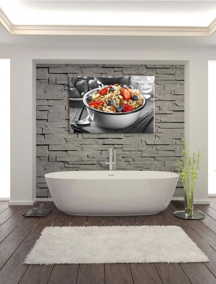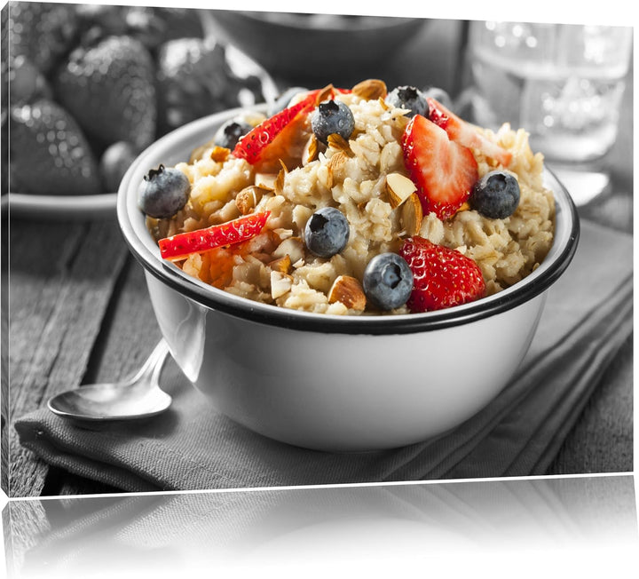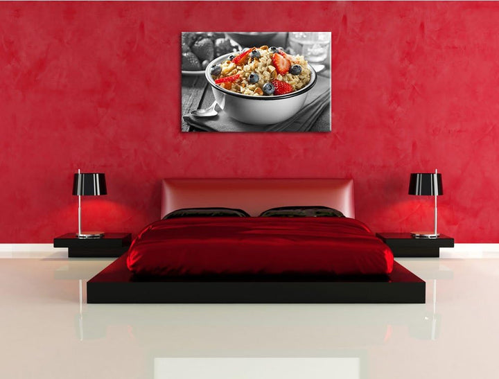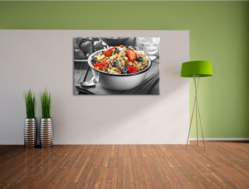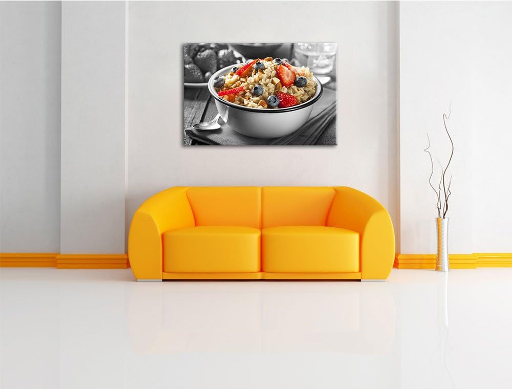 Süsses Früchte Müsli schwarz/weiss Format: 100x70 cm auf Leinwand, XXL riesige Bilder fertig gerahmt