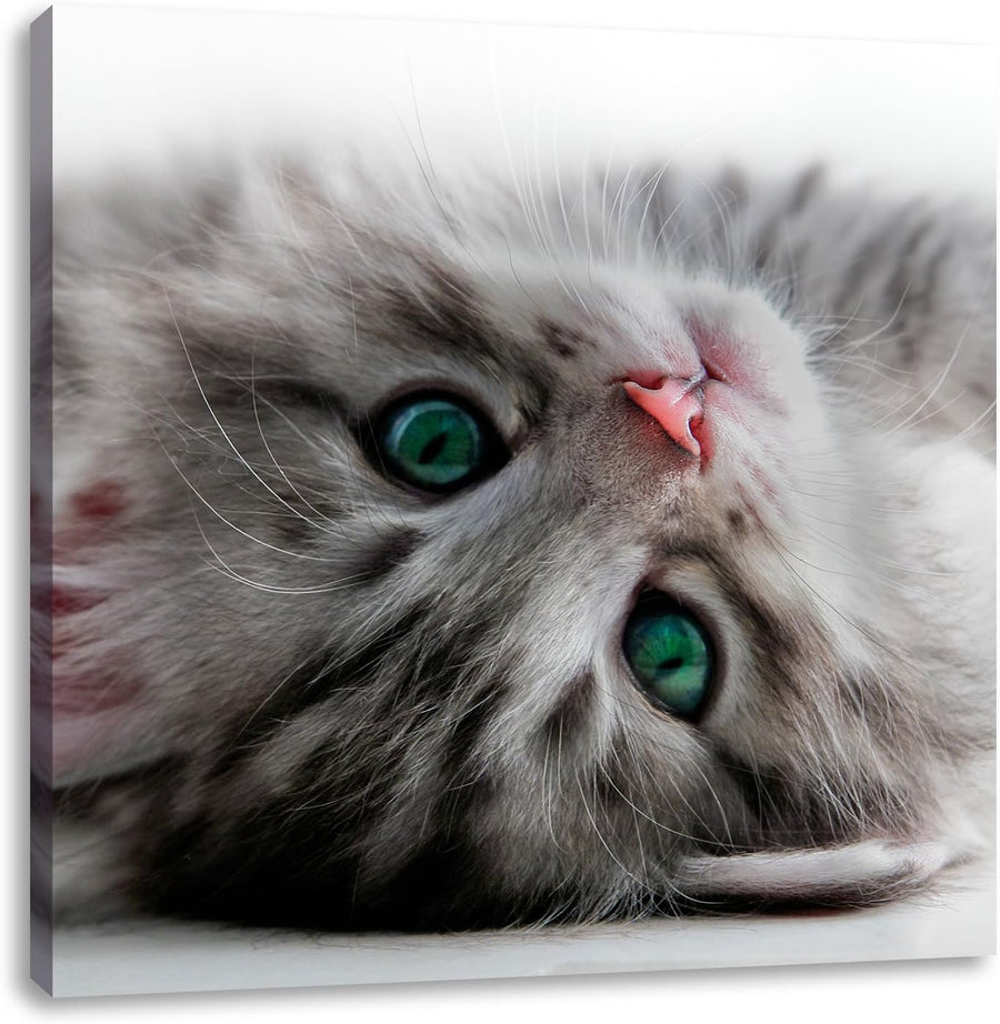 Süsses Katzenbaby, Format: 70x70 auf Leinwand, XXL riesige Bilder fertig gerahmt mit Keilrahmen, Kun