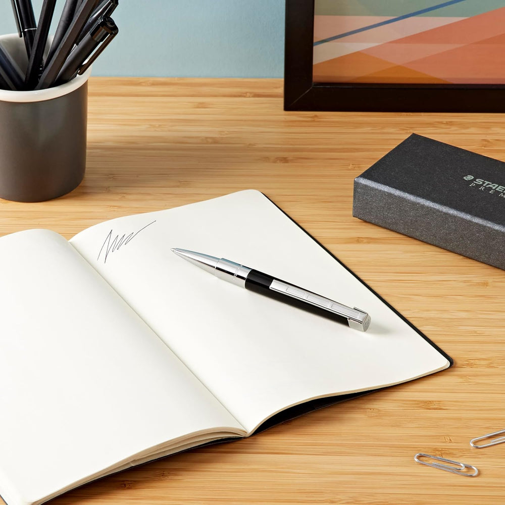 STAEDTLER Initium Resina Drehkugelschreiber, schwarzes Edelharz, B, schwarz, Made in Germany, mit ed