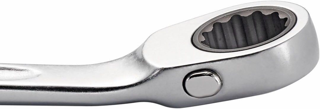 • Umschaltbar zum schnellen Wechseln der Schraubrichtung, Ringseite 15° abgewinkelt mit Doppelsechskant