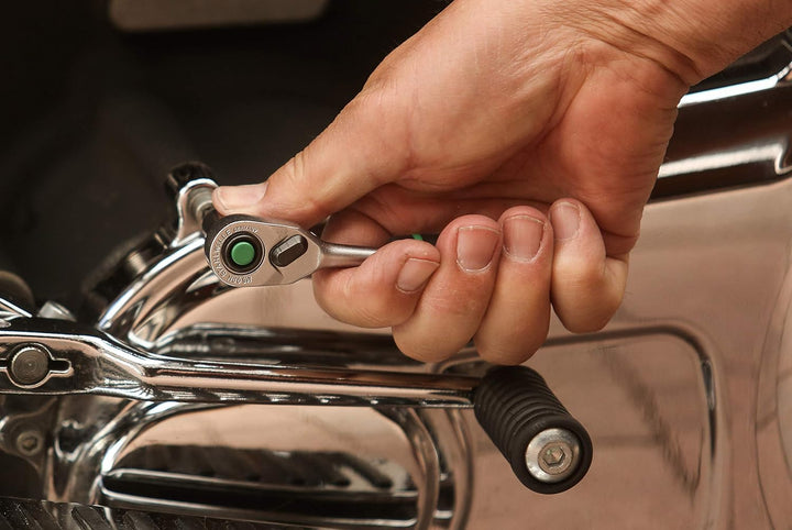 - Einzigartiges QR Verriegelungssystem – sichert jede Komponente von der Knarre über die Verlängerung bis zum Steckschlüsseleinsatz ohne Platzverlust
