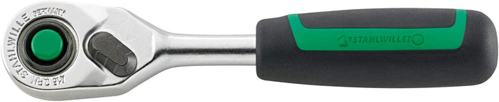 - Made in Germany – umschaltbare STAHLWILLE Ratsche mit 2-Komponentengriff, 80 Zähne, QR Druckknopf-Auslösung, Länge 117 mm, DIN 3122/ISO 3315, Chrome-Alloy-Steel, verchromt, 11111020