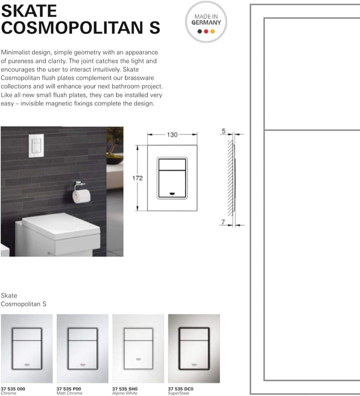 - Lieferumfang Betätigungsplatte für senkrechte Montage, kleiner Revisionsschacht 40 911 000 muss separat bestellt werden, Bedienungsanleitung