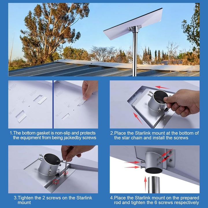 - Facile à installer: Facile à installer à l'aide du matériel inclus, lors de l'installation, insérez simplement le support Starlink Gen3 dans la fente de l'antenne et serrez les deux vis de fixation, puis connectez une tige ne dépassant pas 2,2