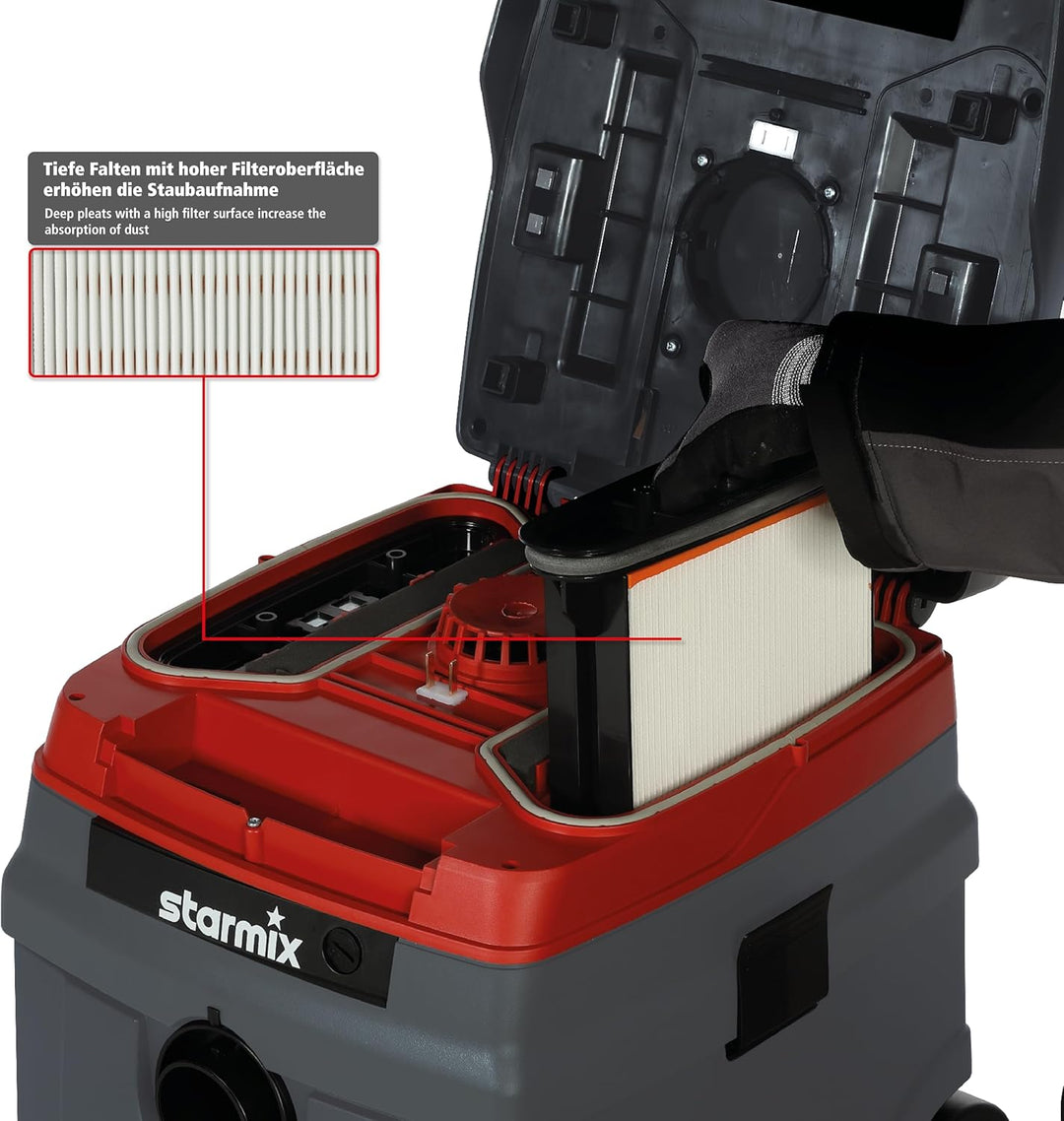 - VOLLER EINSATZ, HÖCHSTE FLEXIBILITÄT: Der Baustaub-Sauger mit automatischer Impuls-Filterabreinigung für den Einsatz bei hoher Staubemission bei Bohr-, Fräs-, Schleif- und Sägearbeiten in der Werkstatt und auf der Baustelle.