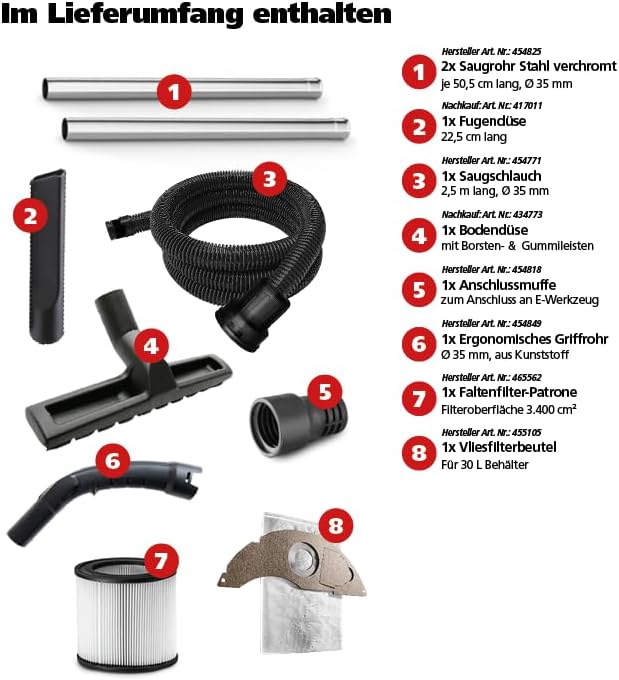 - PRAKTISCH: Kompakter, wendiger und robuster Elektrowerkzeugsauger. Perfekt für den schnellen Einsatz zu Hause, im Hobbykeller oder in der Werkstatt.