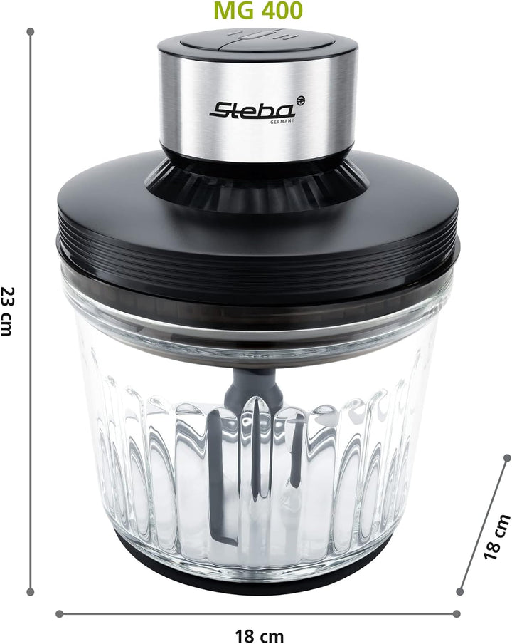 - Zerkleinert Fleisch, Zwiebeln, Kräuter, Nüsse, eignet sich aber auch zur Zubereitung von Sossen, Pesto u.v.m.