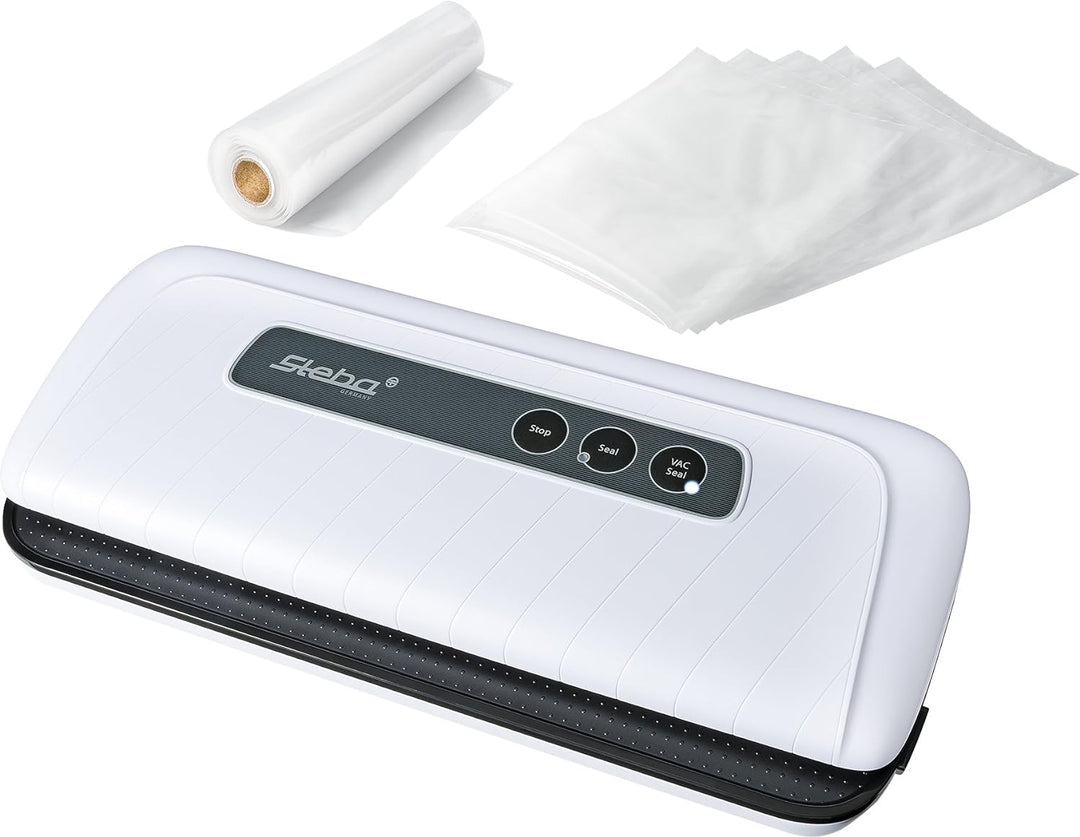 - Inklusive 1 Folienrolle, 5 Folienbeutel, 1 Vakuumierschlauch