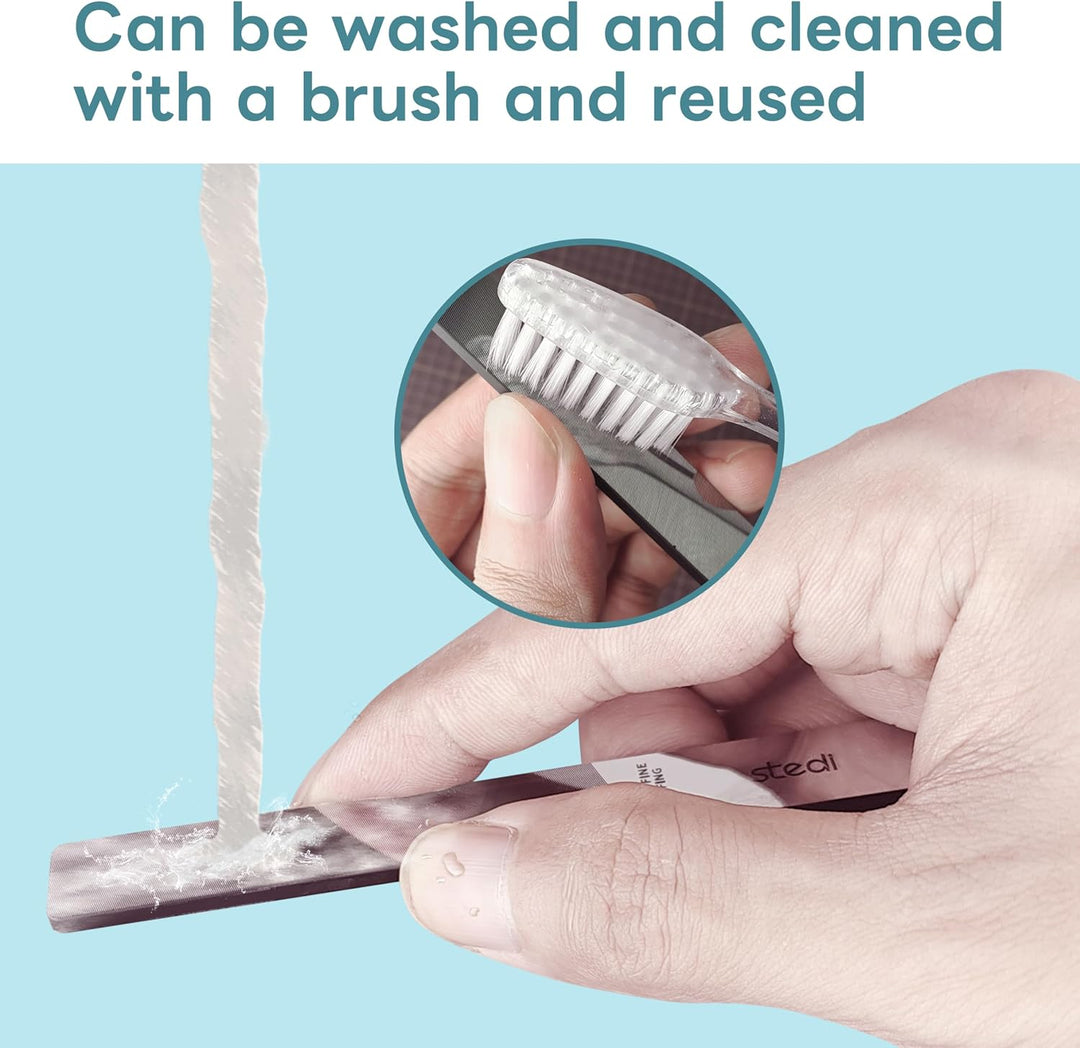 - [Nach dem Gebrauch kann die Feile mit Wasser gewaschen und mit einer Bürste gereinigt werden, um die Schleifwirkung wiederherzustellen und wiederzuverwenden, jede Feile ist mit einer separaten Box zum Schutz, zur einfachen Wartung und Sicherheit