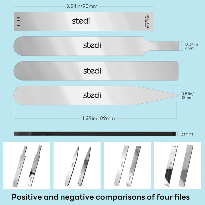 - [QUALITÄTSMATERIAL]:stedi ultra feine Polierfeilen ist aus hochwertigem gehärtetem Glas, hohe Härte und gute Verschleissfestigkeit, Äquivalent zu 10000 Korn Schleifpapier, speziell für das Schleifen und Polieren, behält hervorragende