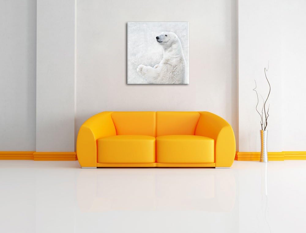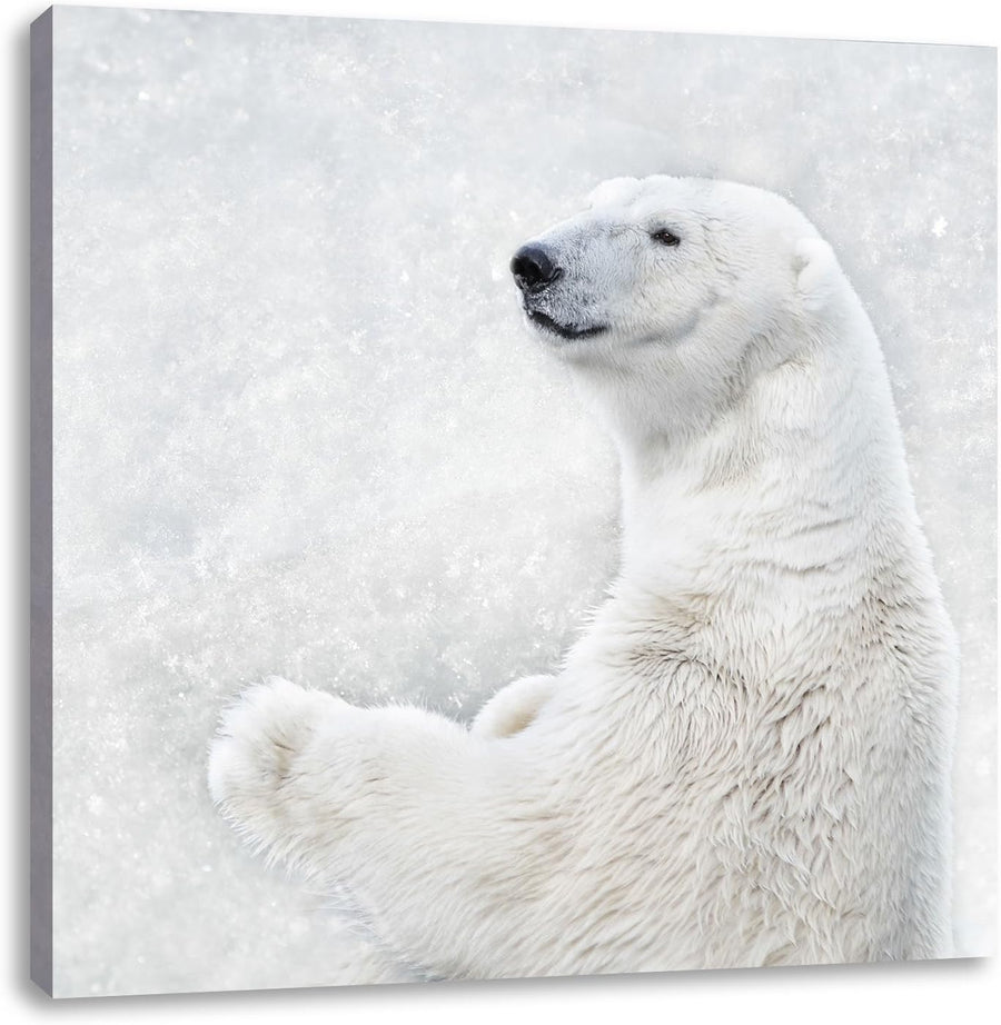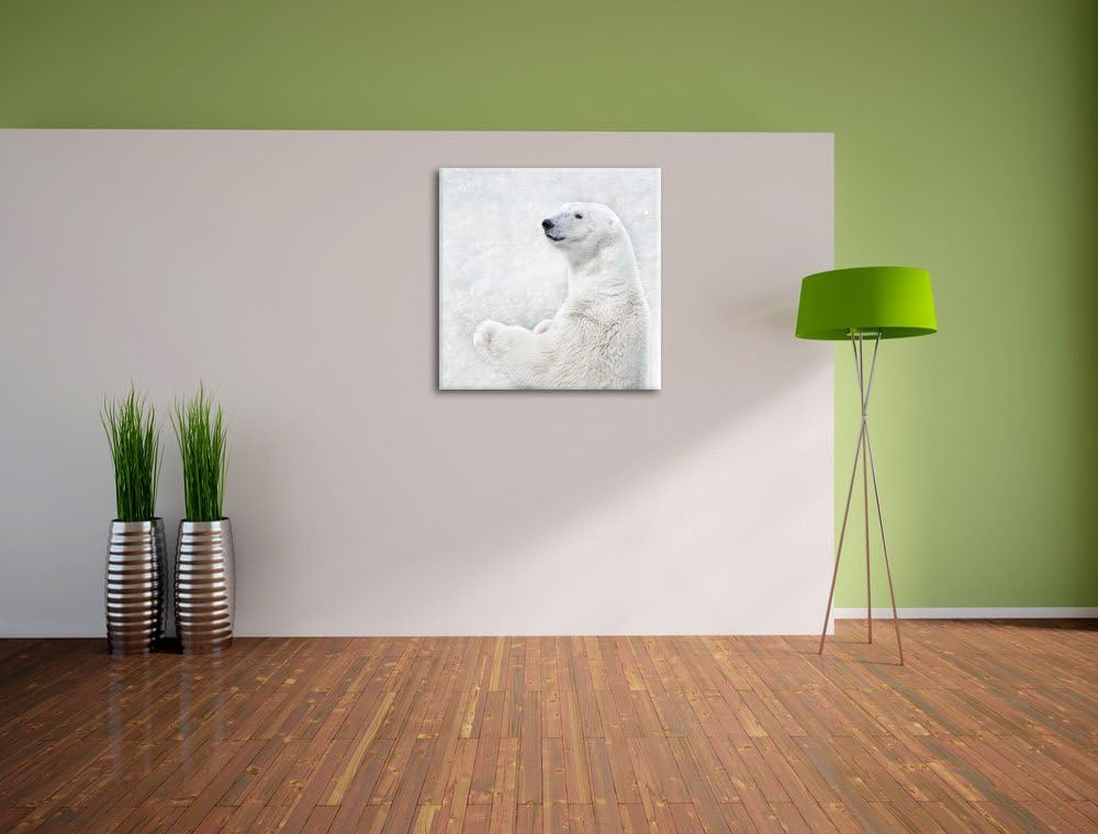 Stehender Eisbär, Format: 70x70 auf Leinwand, XXL riesige Bilder fertig gerahmt mit Keilrahmen, Kuns