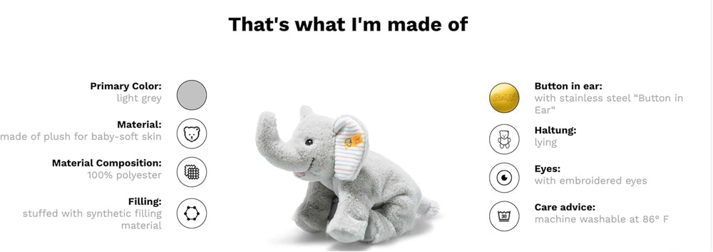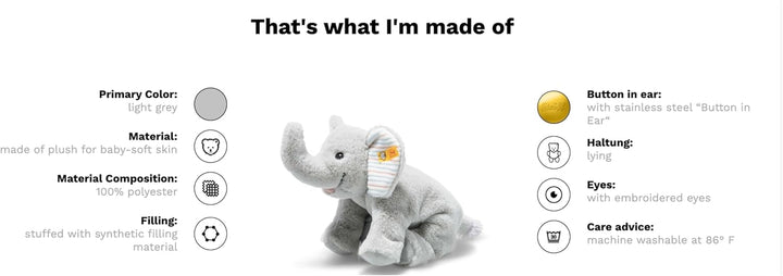 - ORIGINAL STEIFF PLÜSCHTIER - Der „Knopf im Ohr“ steht für unser Versprechen an Sie: Kuscheltiere mit höchsten Anforderungen an Qualität, Sicherheit, Verarbeitung und Materialbeschaffenheit. Diese Tradition erhalten wir stolz seit 1880