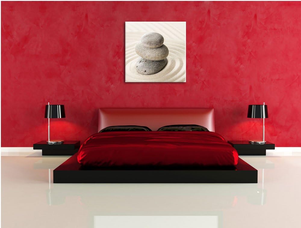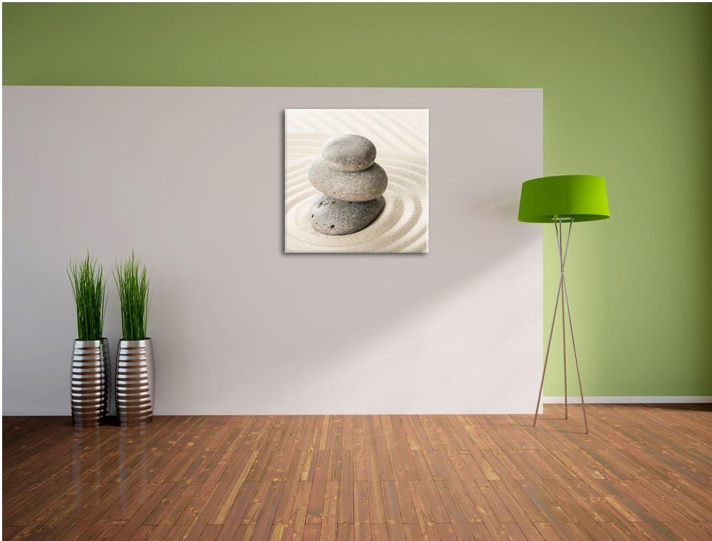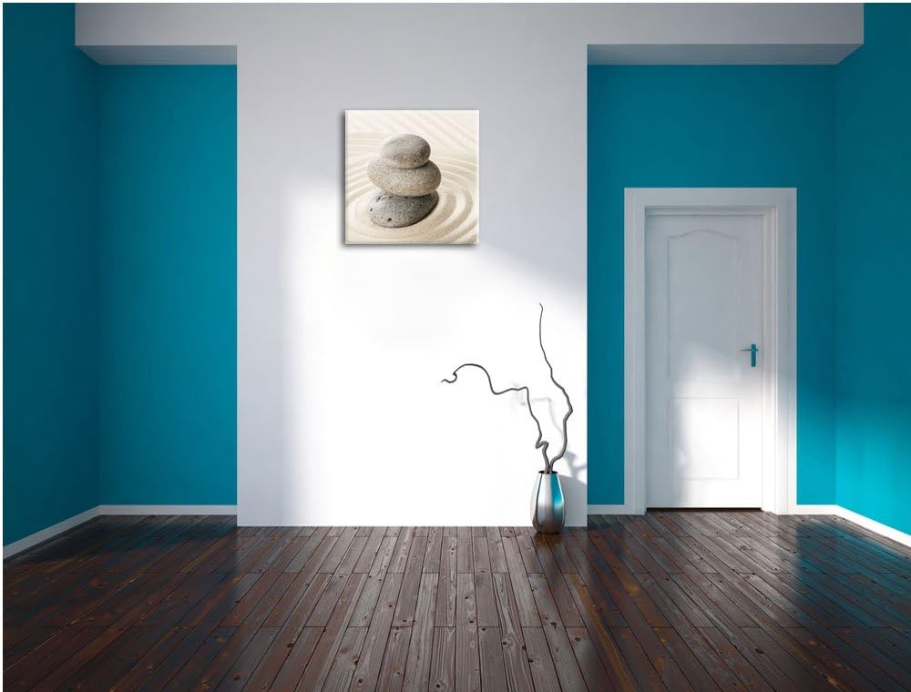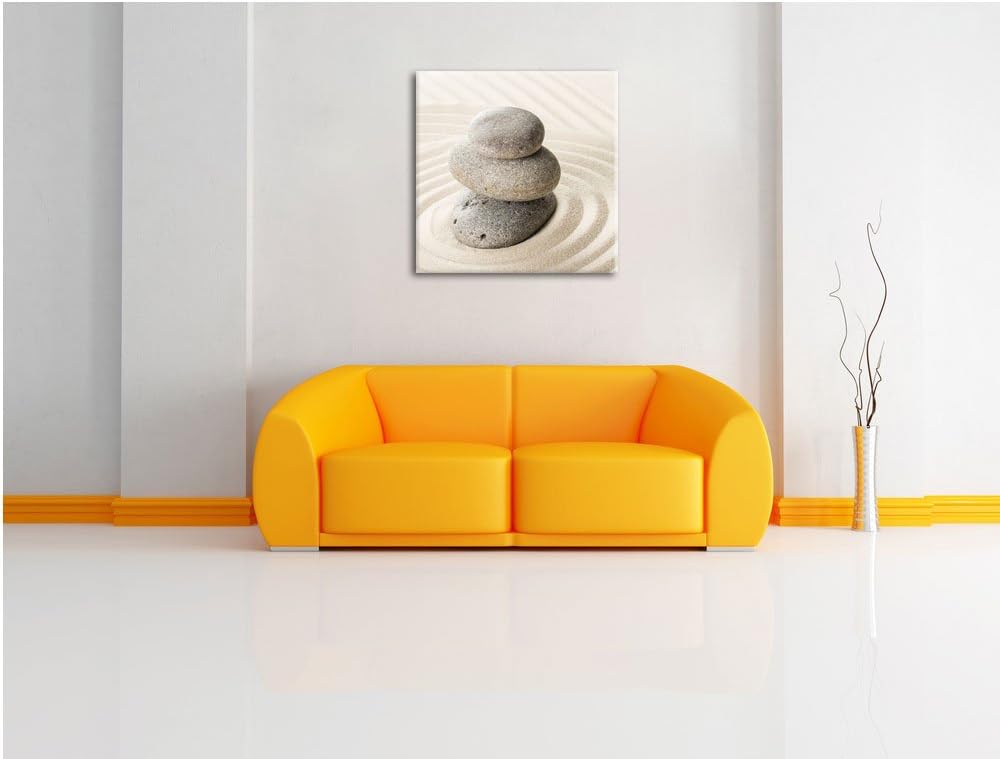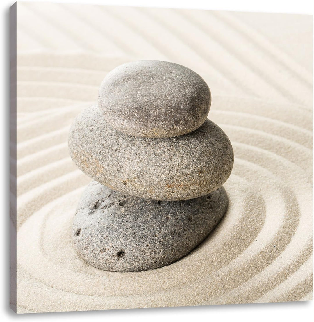 Steine in Sand mit Muster, Format: 70x70 auf Leinwand, XXL riesige Bilder fertig gerahmt mit Keilrah