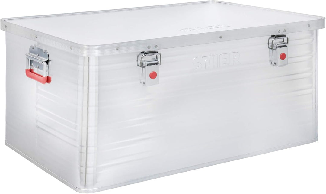 - SICHERER EINSATZ: Stabile Hebelspannverschlüsse für wirksames Haften des Deckels; Begrenzungen im Deckelrahmen für einfaches Stapeln mehrere STIER Aluboxern; Seitlich angebrachte Hebelgriffe für bequemen Transport