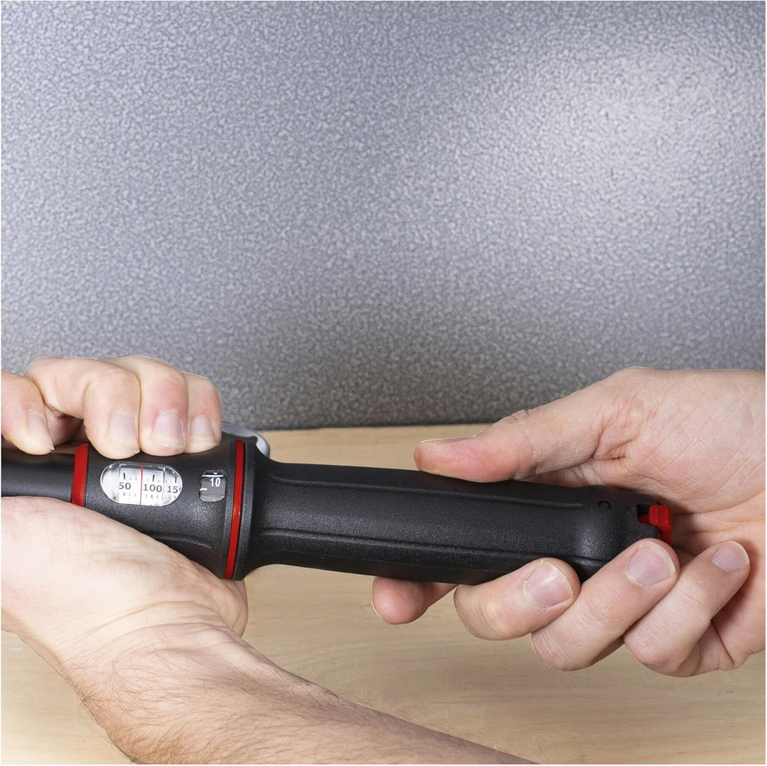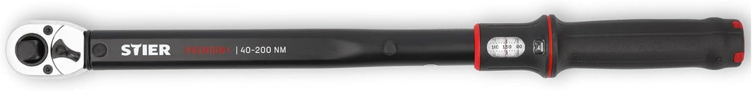 - PRÄZISION: Der Premium+ Drehmomentschlüssel mit 1/2 Zoll Aufnahme hat eine hohe Auslösegenauigkeit mit ±3% Toleranz vom eingestellten Anzugsmoment. Das Drehmoment kann zwischen 40 - 200 Nm eingestellt werden.