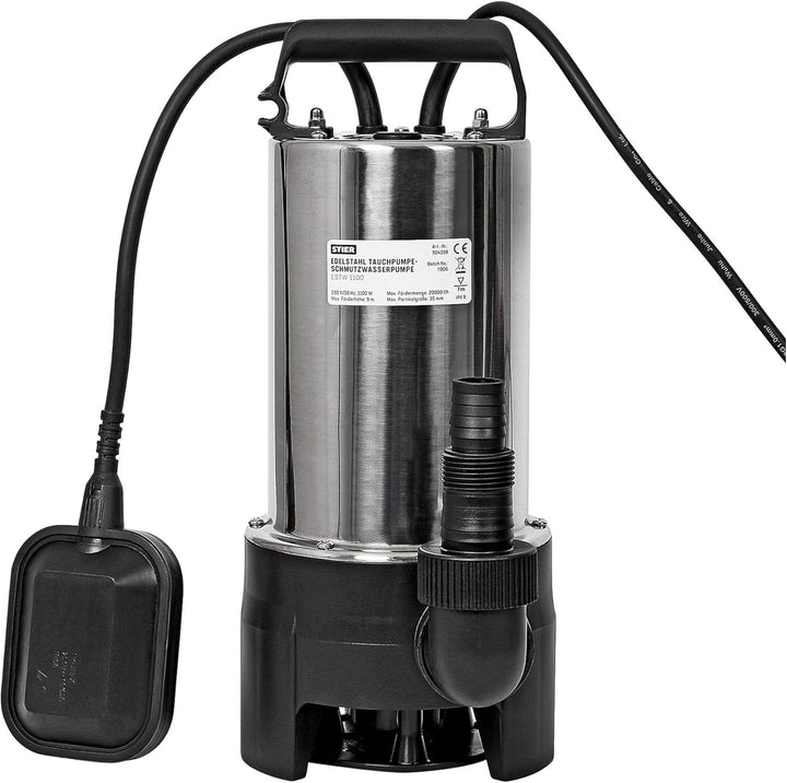 STIER Edelstahl Tauchpumpe Schmutzwasserpumpe ESTW-1100, 20.000 l/h, 11000 W, Edelstahlgehäuse, Schw