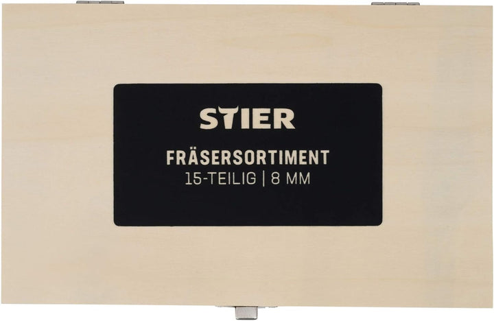 - VIELSEITIG: Das STIER Oberfräse Fräser Set ist in vielen Anwendungsgebieten einsetzbar und ist der ideale Begleiter bei Holzarbeiten jeglicher Art. Kompatibel mit allen gängigen Oberfräsen und einem 8mm Bohrfutter. In der prakitschen Kiste sind die