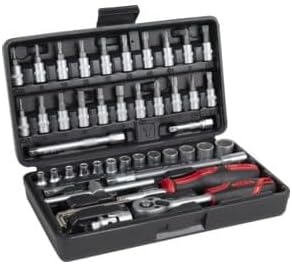 - LIEFERUMFANG: Hochwertige Feinzahn-Umschaltknarre mit 72 Zähnen, Umschalthebel, ergonomischem Zwei-Komponenten-Griff und Druckknopfauslösung für schnellen Werkzeugwechsel. Das Spektrum der Sechskanteinsätze reicht vom 4mm bis 14mm und wird ergänzt