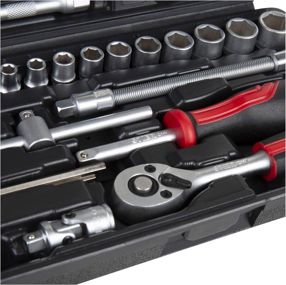 - HOCHWERTIG: Der STIER Steckschlüsselsatz vereint hochwertige Verarbeitung, durchdachte Bedienung und grosse Auswahl, um den hohen Ansprüchen professioneller Anwender gerecht zu werden. Ratschengriffe sind zum Teil gummiert für einen guten Halt.