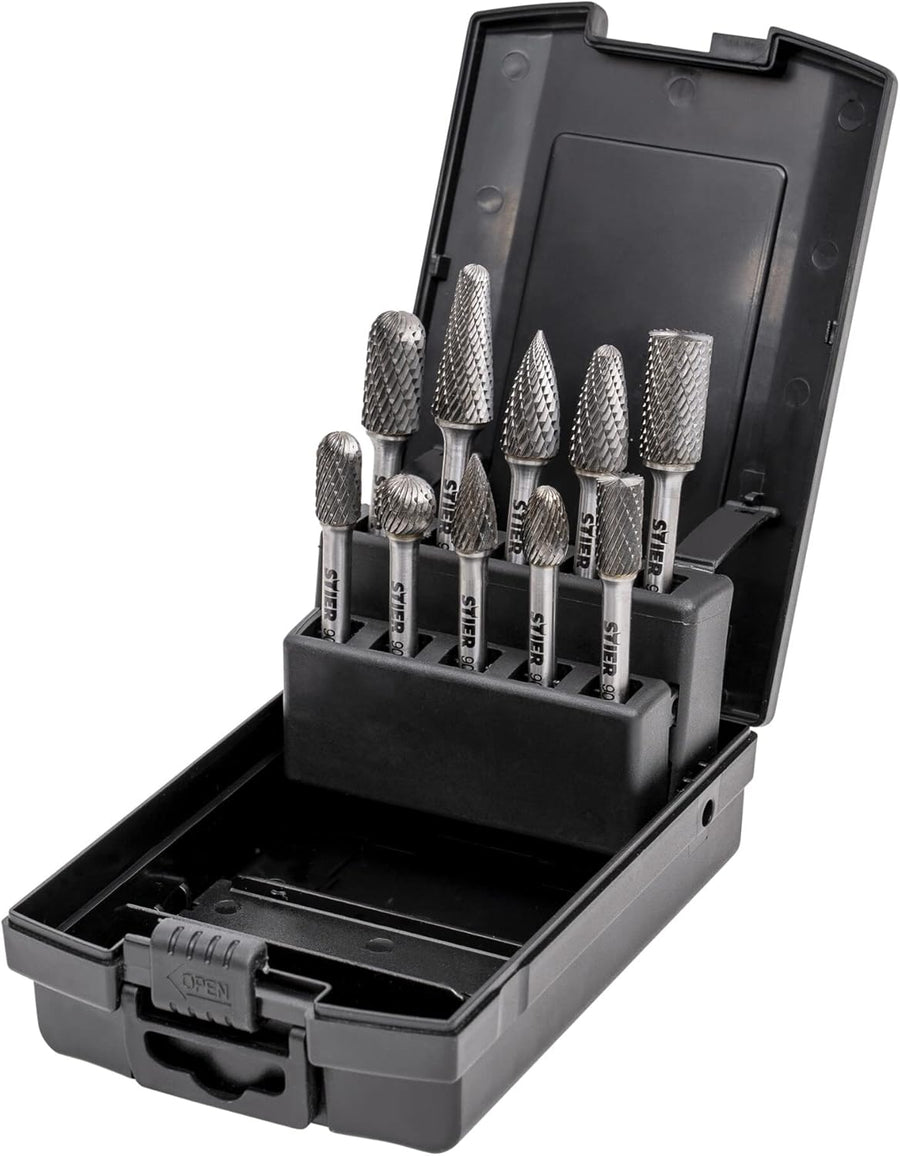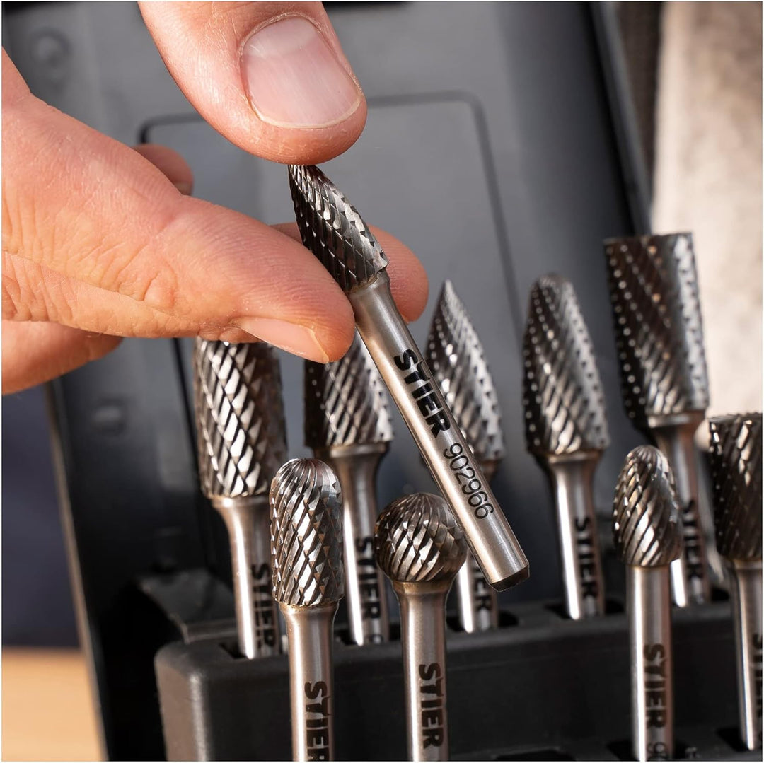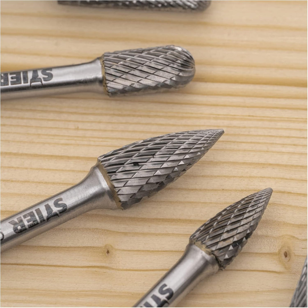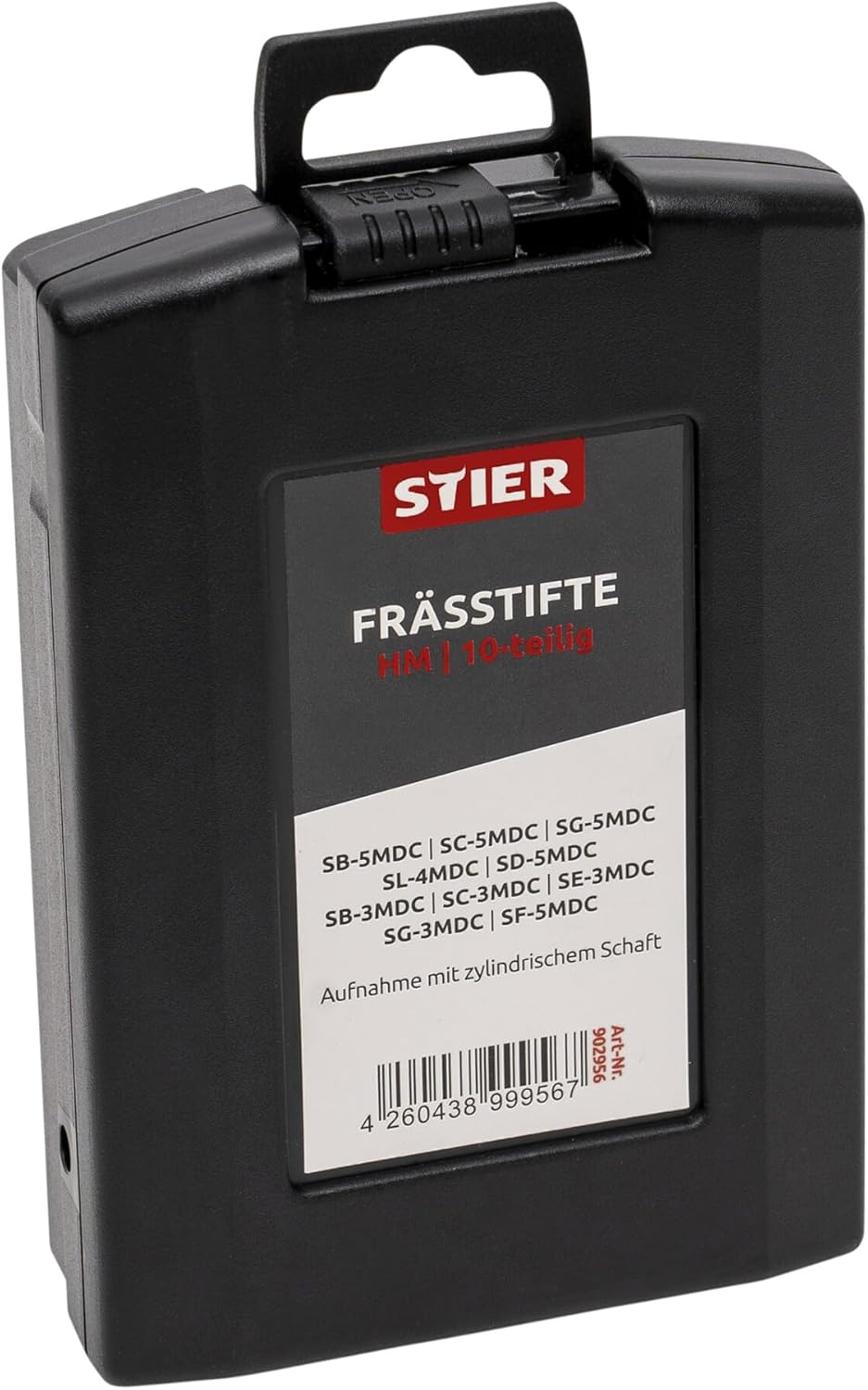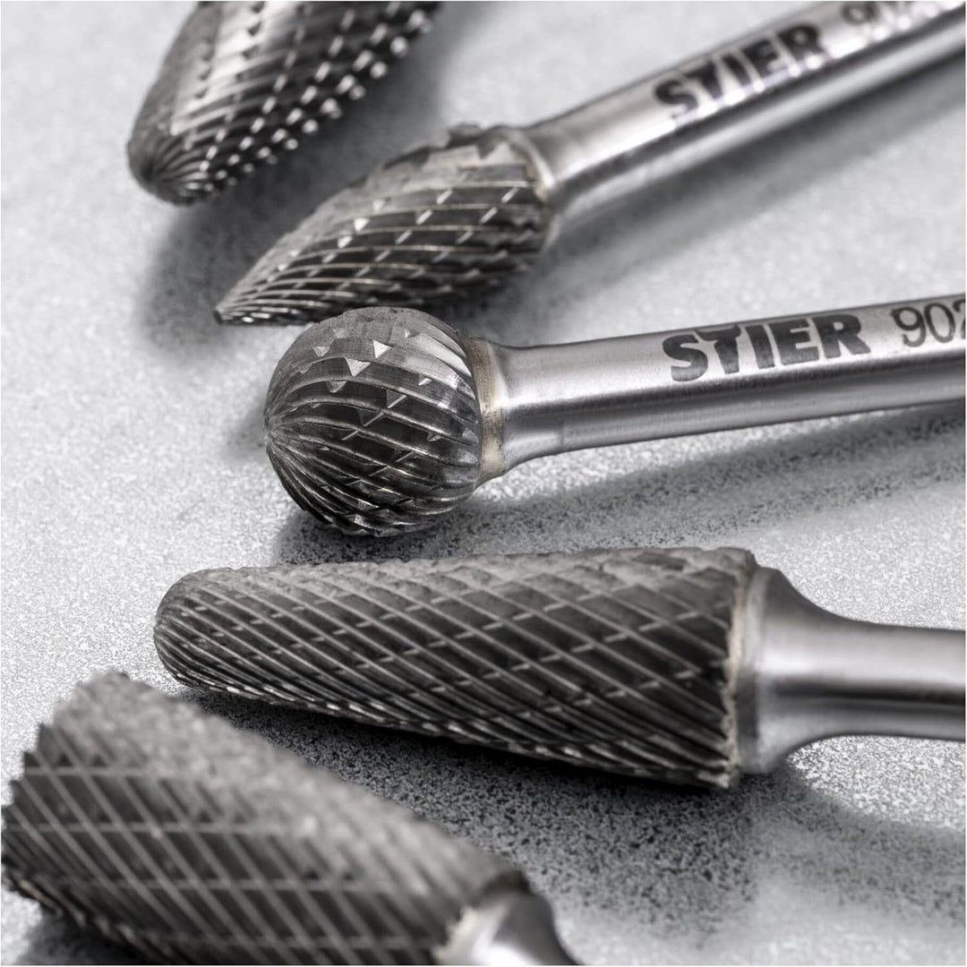 - UNIVERSELLES SET: 10-teiliges, auf nahezu allen Materialien einsetzbares, Schaftfräser-Set von STIER. Der Schaftdurchmesser bleibt bei allen enthaltenen Frässtiften bei 6 mm konstant. Die Fräser bestehen aus Hartmetall