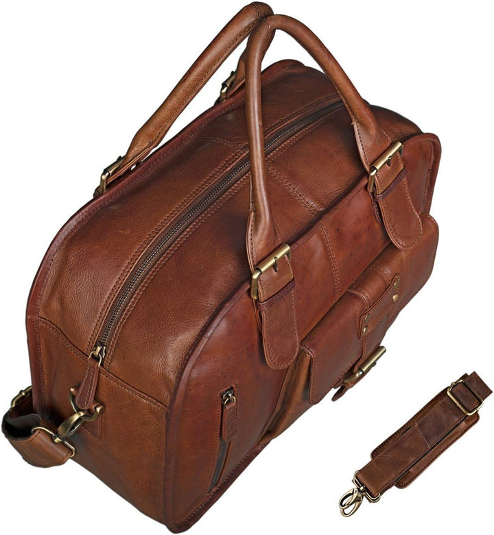 • Vintage Aktentasche für Damen und Herren aus Echtleder vom Büffel | Grosse und repräsentative Leder Umhängetasche mit Platz für zwei grosse DIN A4 Aktenordner | Trageriemen ca. 120 bis 150 cm, längenverstellbar und abnehmbar