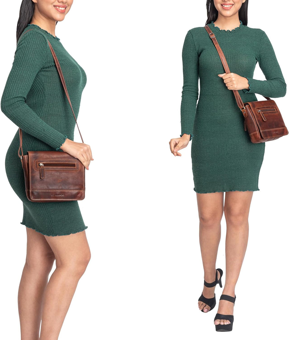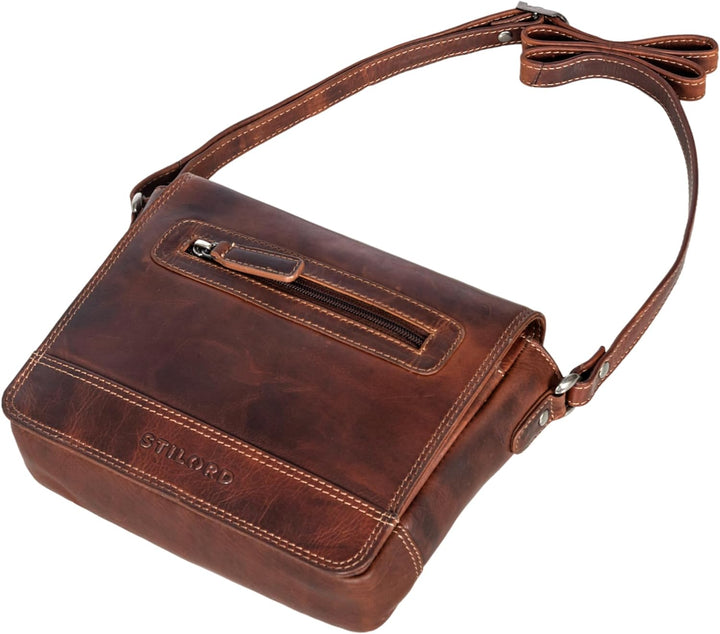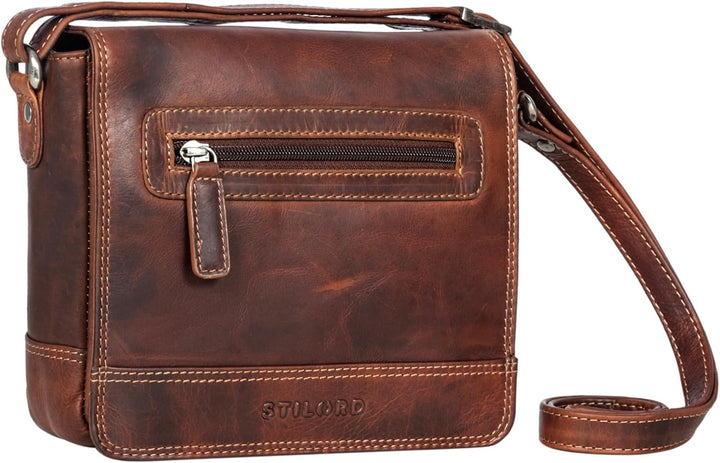 - Abmessungen: (LxBxH) 21 x 6 x 20 cm | Modell: Edith | Material: echtes Leder | Lederart: Rindsleder | Gewicht: 450 Gramm | Hersteller: STILORD | Aufteilung: 1x grosses Hauptfach mit Einsteckfach für Smartphones | 1x kleines Reissverschlussfach im