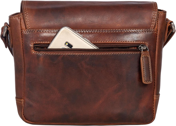 - Edles Design trifft auf erlesene Materialien: Der elegante Überschlag verleiht der Ledertasche zum Umhängen einen einzigartigen Vintage Charakter, welcher durch die natürliche Patina des hochwertigen Leders unterstrichen wird.