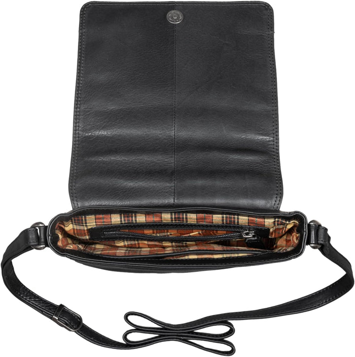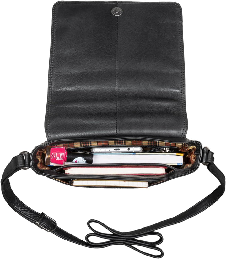 • Edles Design trifft auf erlesene Materialien: Der elegante Überschlag verleiht der Ledertasche zum Umhängen einen einzigartigen Vintage Charakter, welcher durch die natürliche Patina des hochwertigen Leders unterstrichen wird.