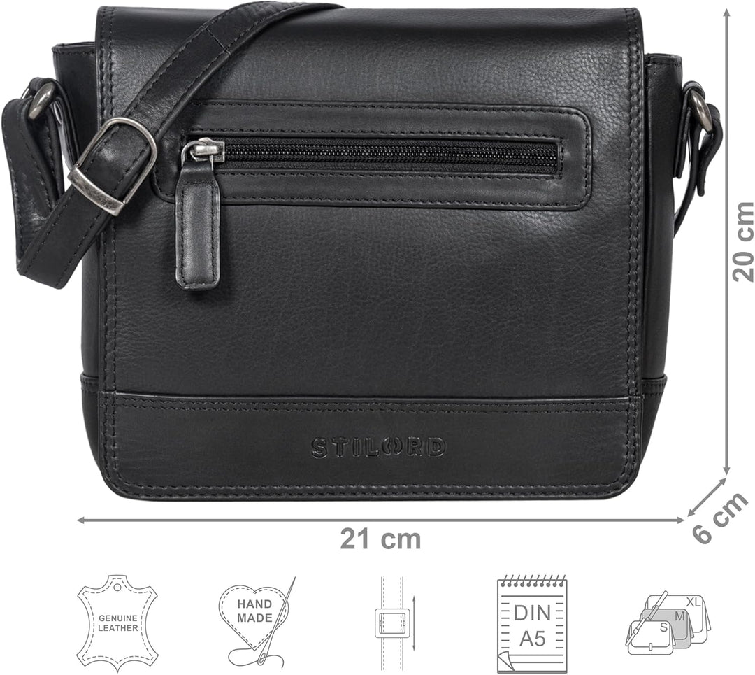 • Abmessungen: (LxBxH) 21 x 6 x 20 cm | Modell: Edith | Material: echtes Leder | Lederart: Rindsleder | Gewicht: 450 Gramm | Hersteller: STILORD | Aufteilung: 1x grosses Hauptfach mit Einsteckfach für Smartphones | 1x kleines Reissverschlussfach im