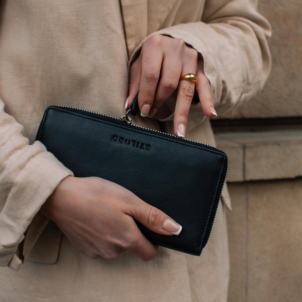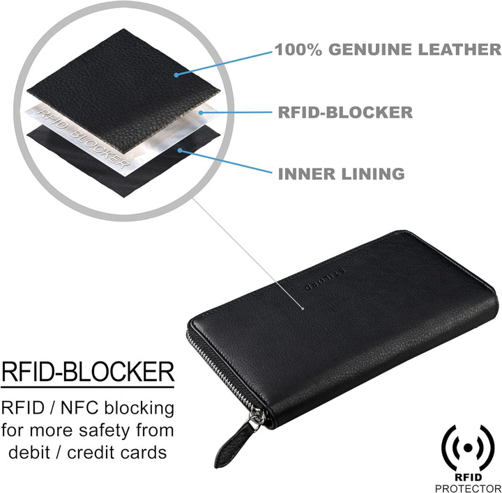 • Leder Geldbörse mit RFID und NFC Schutz | Elegante Geldtasche im Querformat | Geldbörse aus Leder für Frauen mit Stil