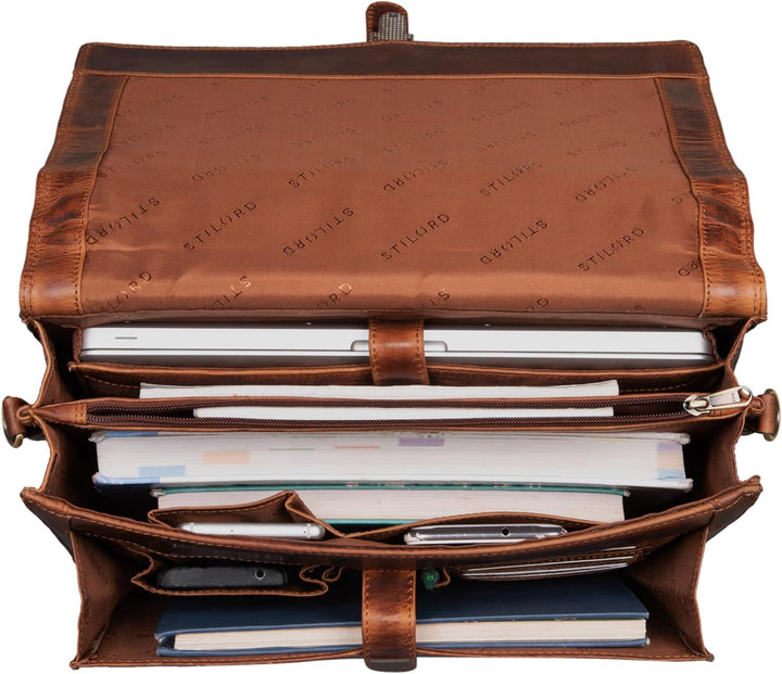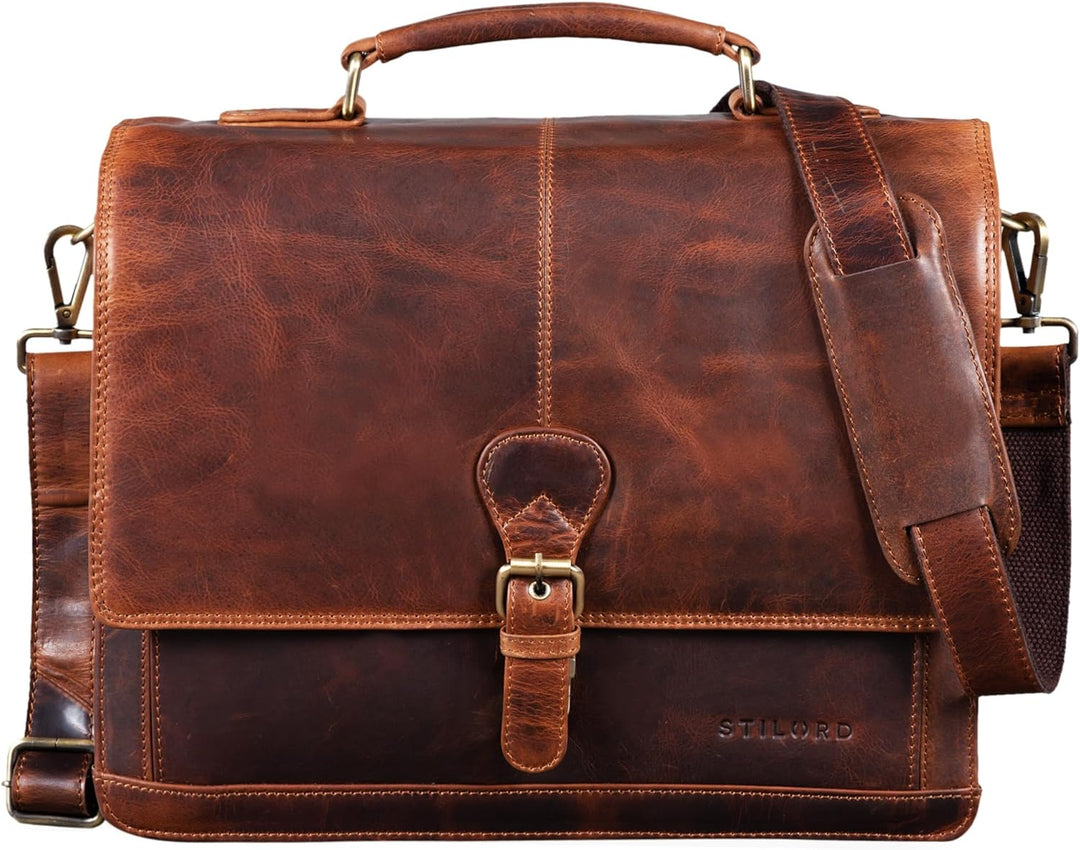 - Abmessungen: 36,5 x 32,5 x 5,5 cm | Modell: Francis | Gewicht: 2000 Gramm | Material: echtes Rinds Leder | Für Herren und Damen | Hersteller: STILORD | ungepolstertes Hauptfach geeignet für 13,3 Zoll Laptops