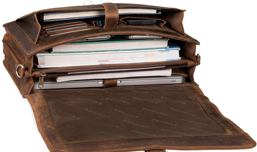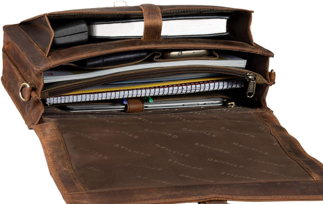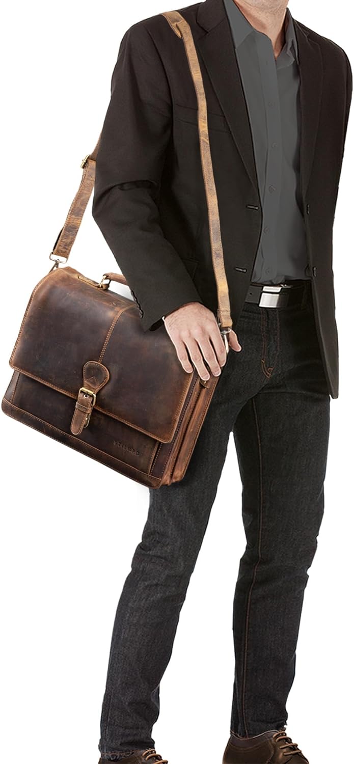 - Abmessungen: 36,5 x 32,5 x 5,5 cm | Modell: Francis | Gewicht: 2000 Gramm | Material: echtes Rinds Leder | Für Herren und Damen | Hersteller: STILORD | ungepolstertes Hauptfach geeignet für 13,3 Zoll Laptops
