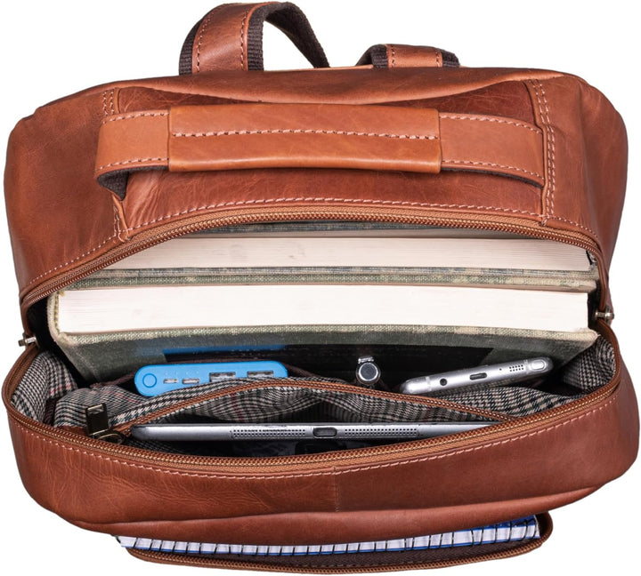 - 'Glover' Business Lederrucksack 15,6 Zoll: unisex Arbeitsrucksack aus hochwertigem Leder. Vollbringen Sie Glanzleistung zusammen mit dem eleganten Vintage Rucksack!