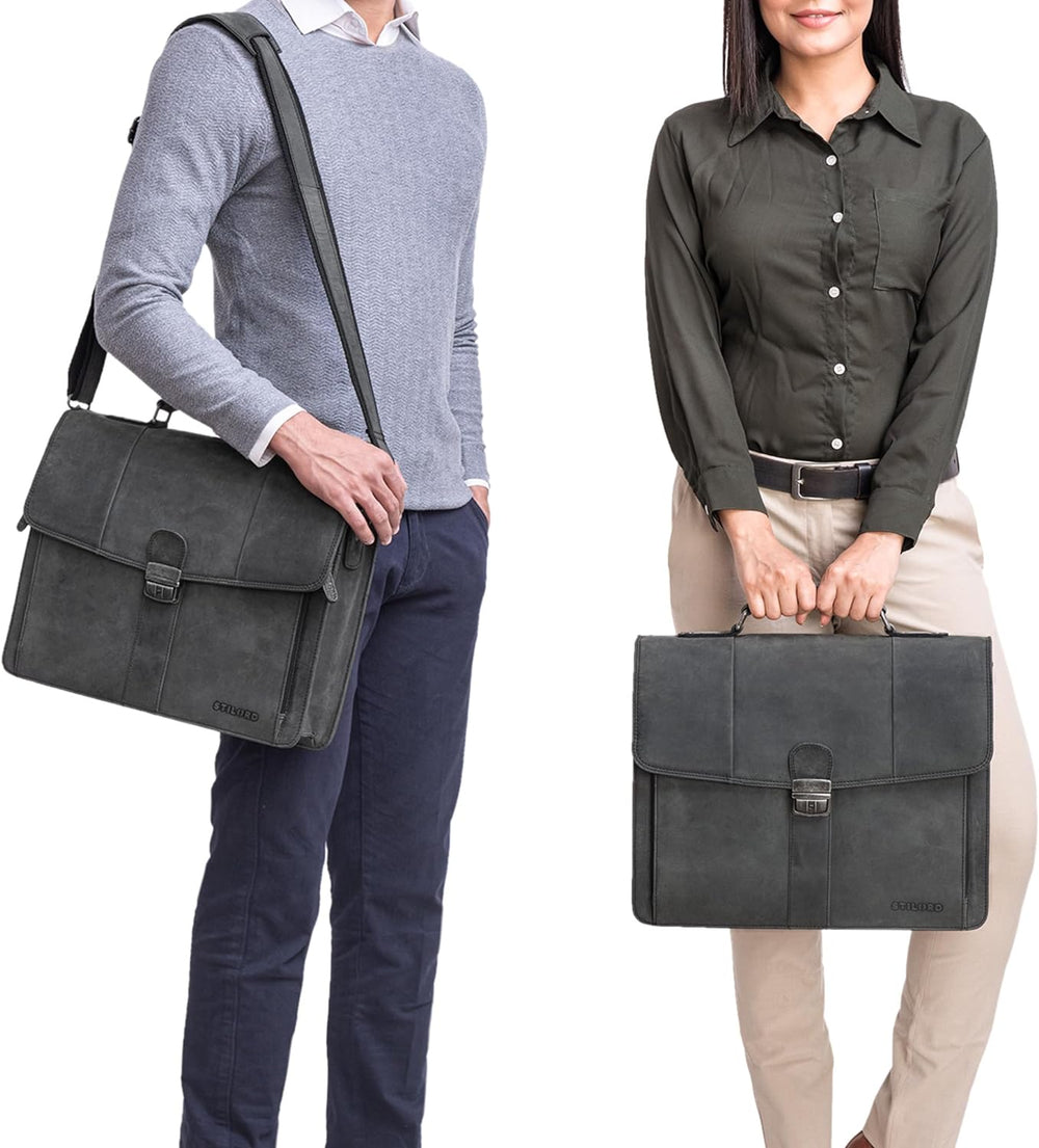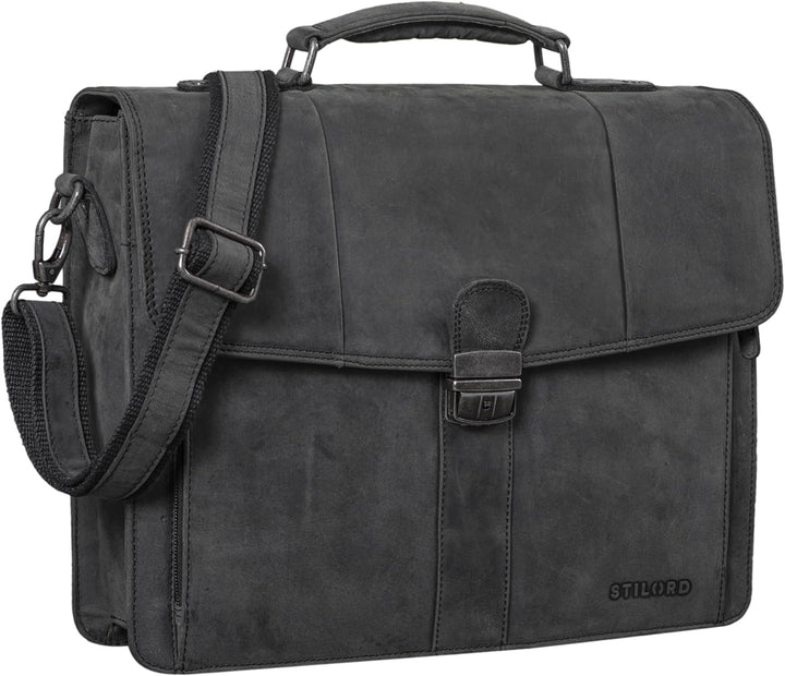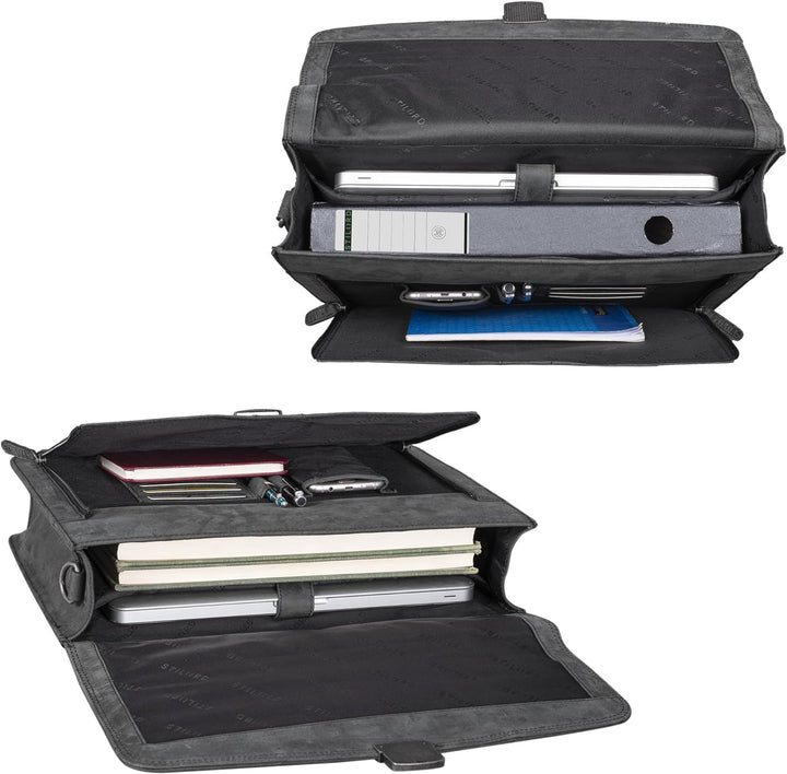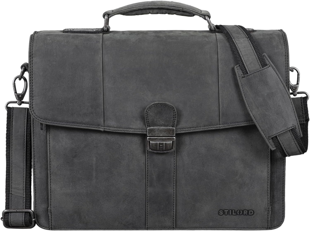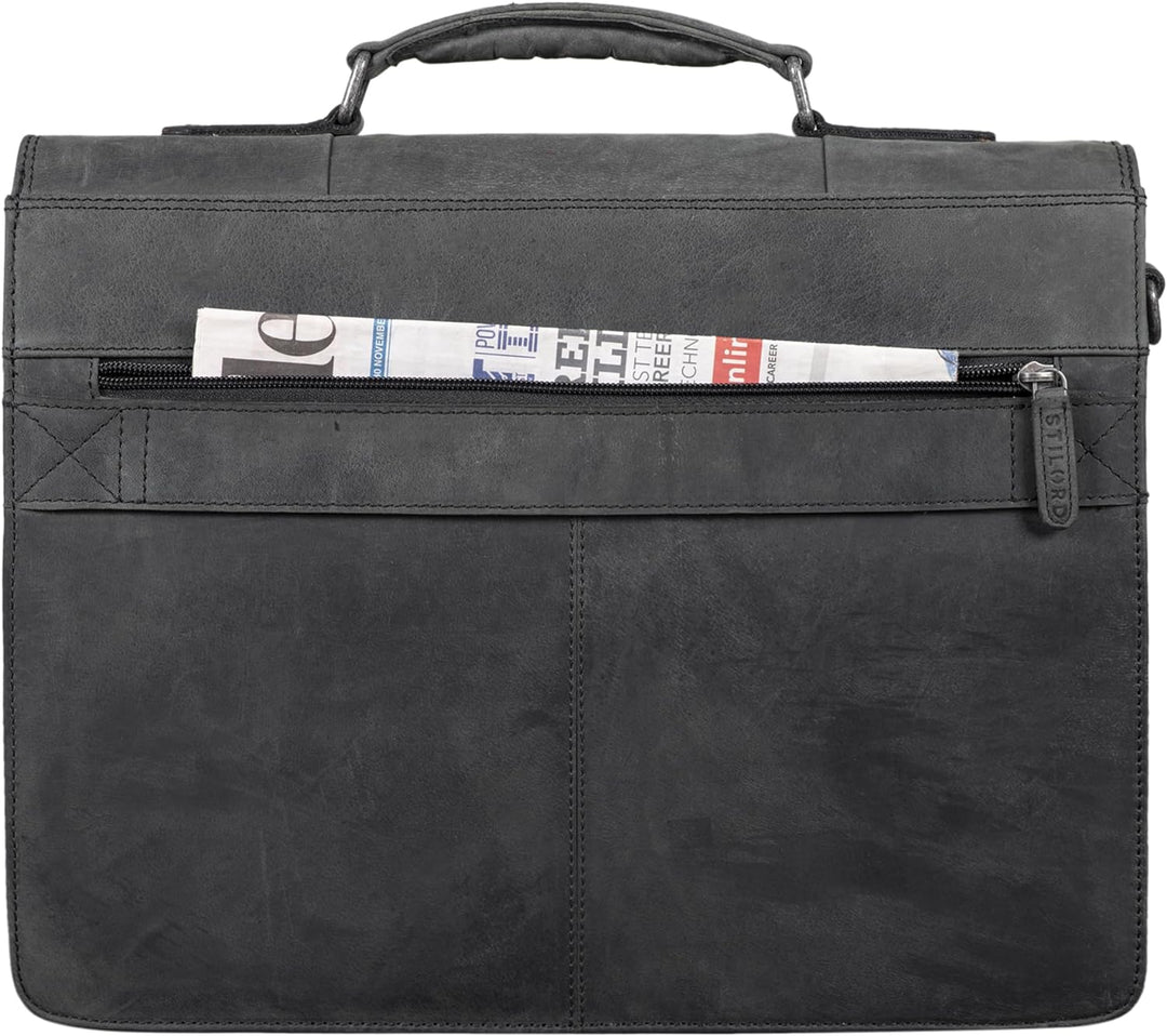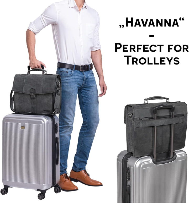 PRODUKTBESCHREIBUNGEN 'Havanna' Business-Tasche Leder Aktentasche Eine klassische Dokumentenmappe der jungen Marke STILORD für zeitloses, elegantes und elegantes Aussehen, aber auch für eine besonders gut organisierte Präsentation vor Kunden und Kollegen. Daher ermöglicht 'Havanna' die einfache Aufbewahrung eines DIN A4 Hemdes und gleichzeitig einen 15,6 Zoll Laptop im separaten Laptop-Fach. Eine Organisationsleiste mit EC-Kartenfächern, Einsteckfach und Stifthaltern runden das Sortiment ab. Besonders praktisch für Geschäftsreisen - auch wenn Sie nicht nach Kuba gehen: Die Business-Tasche 'Havanna' kann an den Einkaufswagen befestigt werden! Business-Tasche aus Leder 'Havanna' A4 - Intelligentes 2-in-1-Konzept: durch einen verstellbaren und abnehmbaren Schultergurt (65 - 130 cm, 3 cm breit) als Tragegriff oder Umhängetasche - sehr geräumiges Hauptfach für grosse Ordner | Bücher | Dokumente DIN A4 - Hochwertiges, robustes und einzigartiges Vollnarbenleder mit Vintage-Charakter - ungleichmässige Streifen und Farben machen Ihre Tasche zu einem Unikat. - klassisch, zeitlos und elegant als Arbeitstasche | Vintage Ledertasche | Business Tasche | Bürotasche | Dokumententasche | Laptoptasche - Aufteilung: 1 x Reissverschlussfach hinten | 1 x grosses Hauptfach | 1 x aufklappbares Nebenfach mit Organisationsstreifen - Organisationsleiste mit: 4 x EC Kartenfächer | 2 x Stifthalter | 1 x Steckfach - Masse (L x B x H): 40 x 9 x 32 cm | Modell: Havana | Material: Leder | Lederart: Rindsleder | Gewicht: 1550 Gramm | Kompatibilität: für grosse Hemden und Laptops 15,6 Zoll (separates Fach 38,5 x 26 cm)) | Montage auf Trolleys