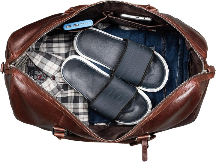- BEHALTEN SIE DEN ÜBERBLICK: Der grosszügige und leichtgängige Reissverschluss über dem Hauptfach sorgt für einen idealen Überblick über den Inhalt der Vintage Leder Reisetasche