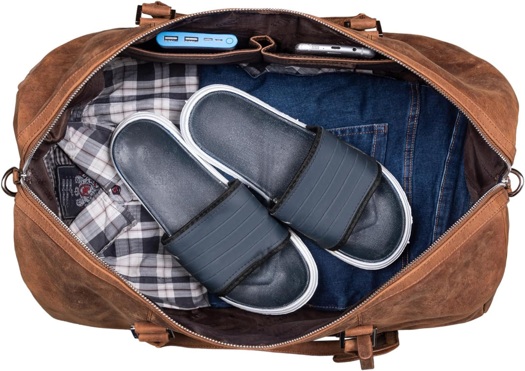 - BEHALTEN SIE DEN ÜBERBLICK: Der grosszügige und leichtgängige Reissverschluss über dem Hauptfach sorgt für einen idealen Überblick über den Inhalt der Vintage Leder Reisetasche