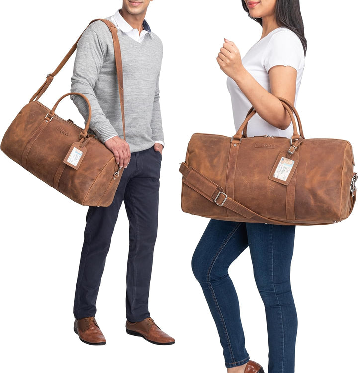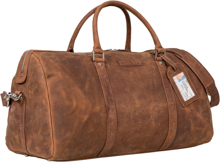 - SICHERER HALT: Durch den verstellbaren Ledergurt und die verstärkten Lederhenkel, begleitet Sie die Travel Bag sicher über der Schulter oder bequem in der Hand