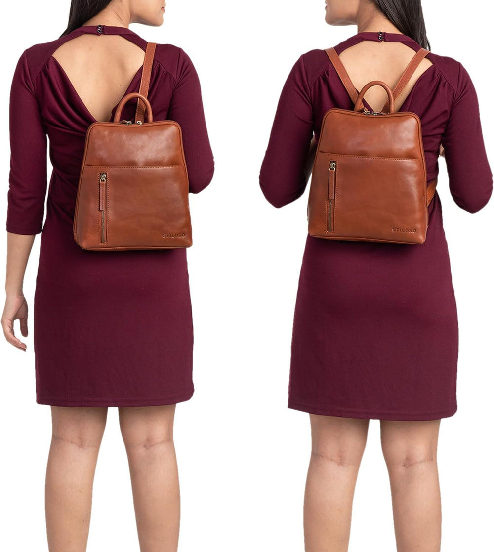 - 'Holly' Rucksack Frauen klein Leder vom deutschen Markenhersteller STILORD: eleganter Cityrucksack mit modernem Vintage Charme