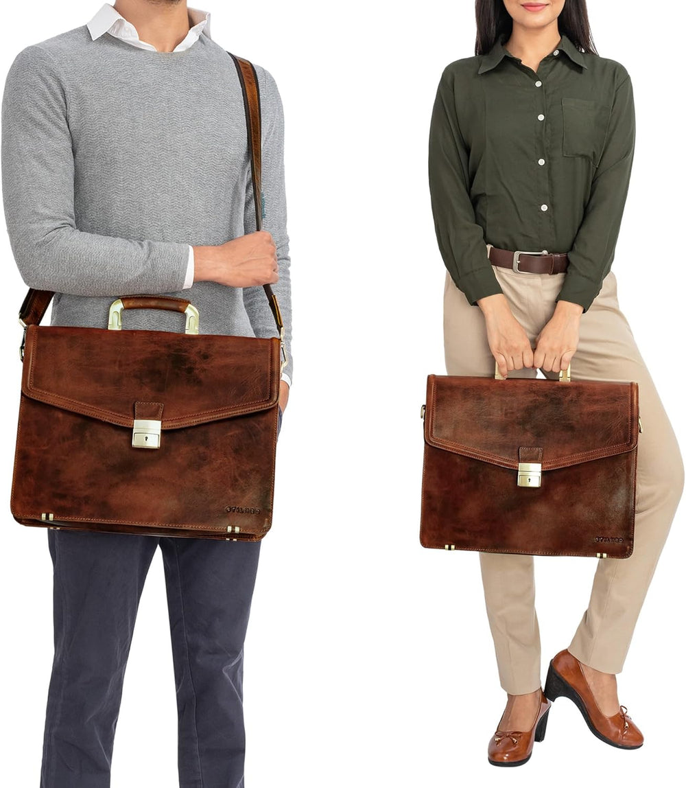 - 'Lazarus' Aktentasche Leder Gross Herren Damen | Exzellente Vintage Businesstasche für den stilsicheren und repräsentativen Auftritt vor Kunden und Kollegen