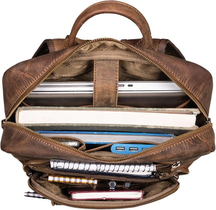 - AUF´S OFFICE ABGESTIMMT: Das Notebook-Fach und die vielen kleinen Fächer, machen die Leder Business Rucksack Damen und Herren zu dem perfekten Partner fürs Büro.