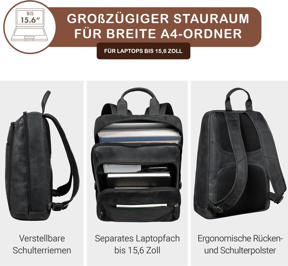 - 'Watson' Laptop Rucksack 15.6 Zoll Leder vom Markenhersteller STILORD. Stilsicherer Begleiter auf jedem Weg - vom Büro bis zum Feierabend