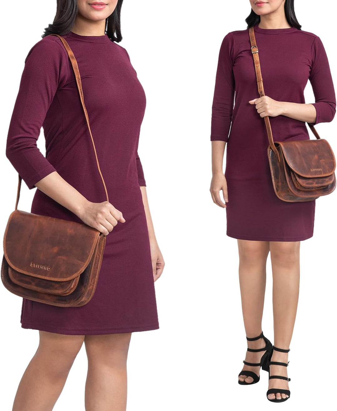 • PRAKTISCHER WEGGEFÄHRTE: Mit unserer Echtleder Damen Umhängetasche erwartet Sie ein stilsicherer und praktischer Begleiter - ein Raumwunder im kompakten Format!