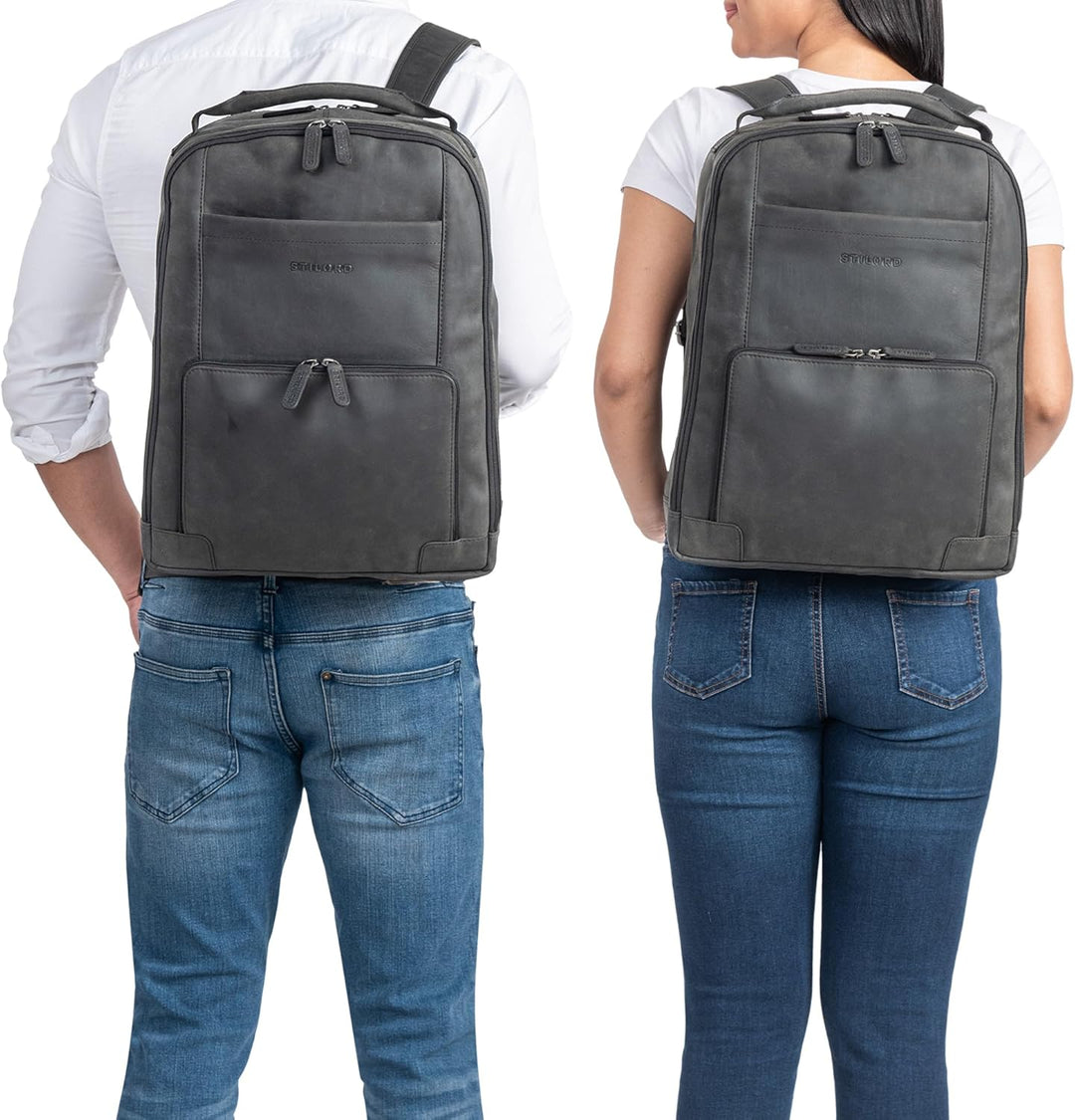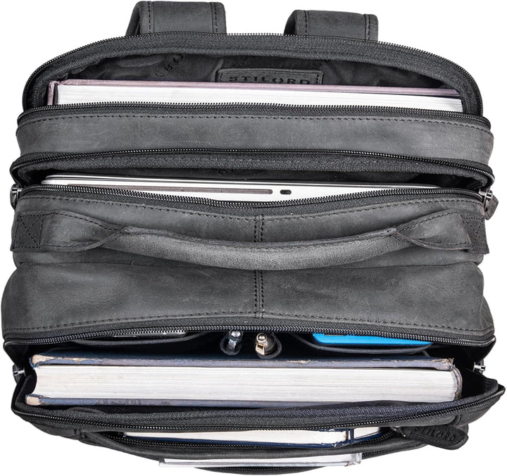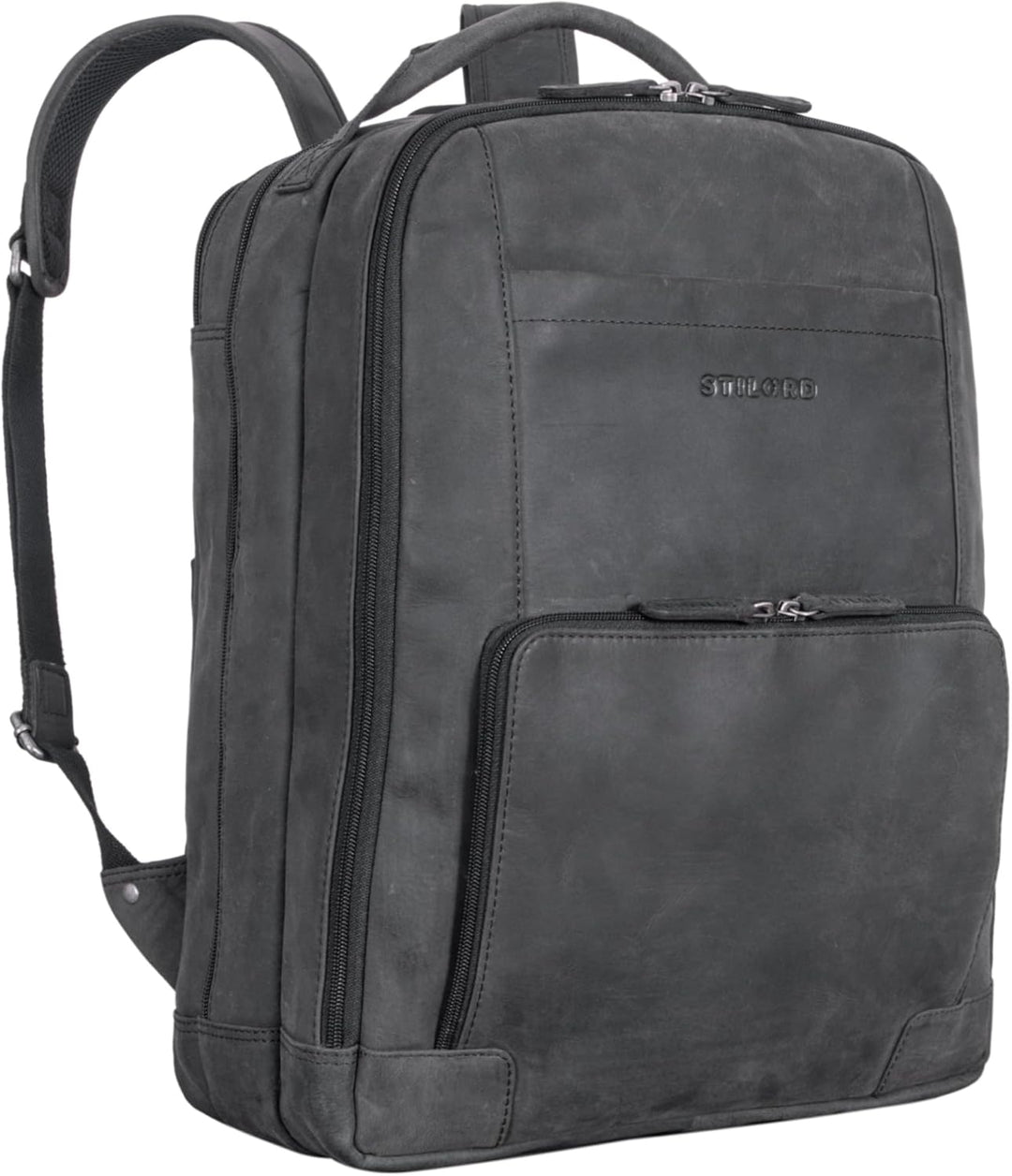 STILORD XL Herren-Businessrucksack aus Leder anthrazit - 15-17 Zoll grosser Arbeitsrucksack - Männer