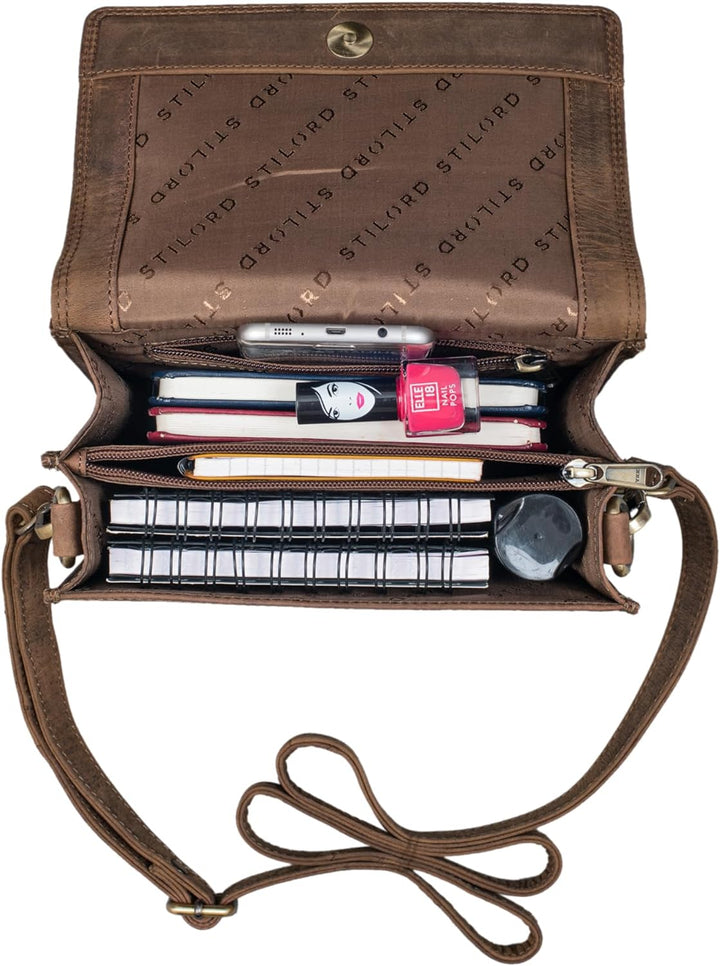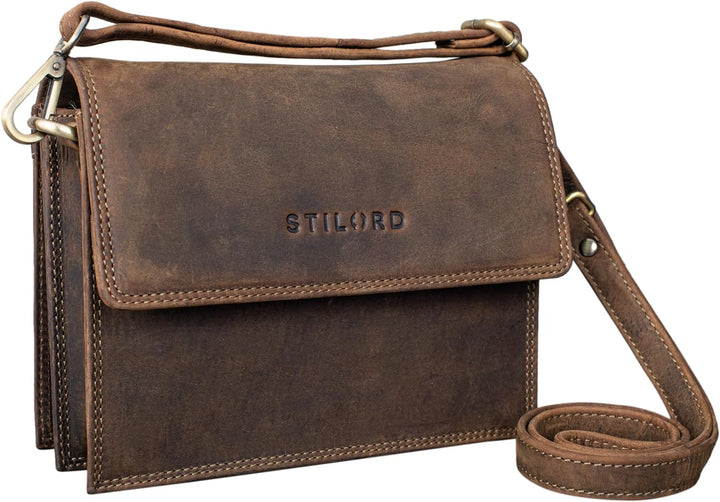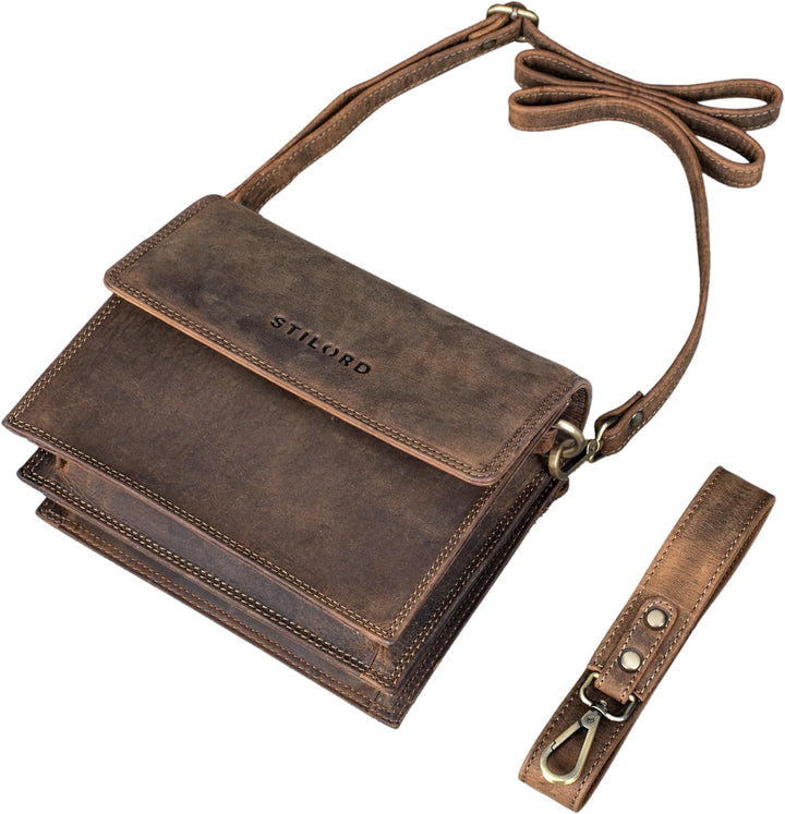 PRODUKTBESCHREIBUNGEN 'Aleia' Handtasche klein Leder Bei Eleganz geht es nicht darum, Aufmerksamkeit zu erregen, sondern sich daran zu erinnern. Das hat einer der legendärsten Stylisten aller Zeiten gesagt. Aleia' kommt mir sofort in den Sinn. Der Fokus liegt hier auf der Eleganz des Designs. Das einzigartige Merkmal: Zwei abnehmbare Schultergurte geben Ihnen maximale Wahlfreiheit. Sie können Ihr Unikat mit dem kurzen Umhängeband direkt über Ihrer Schulter tragen. Sie können die 'Aleia' auch mit der längeren Kreuztasche als Umhängetasche tragen. Das Hauptfach mit zwei Fächern sorgt dafür, dass Sie in einem kompakten Format gut organisiert bleiben. Das hochwertige Vintage Leder macht die Umhängetasche 'Aleia' zum Hingucker - unabhängig von Modetrends. Sie können die schlichte Eleganz der Ledertasche lässig zum Einkaufen oder elegant für einen Abend mit einer Kleiderordnung kombinieren. Wir sind davon überzeugt, dass Sie mit 'Aleia' nicht nur Aufmerksamkeit erregen werden - Ihr Auftritt wird in Erinnerung bleiben. 'Aleia' Kleine Damen Handtasche aus Leder - Damen Ledertasche in schlichter Eleganz, die vielfältig mit Ihren Outfits kombiniert werden kann. - langer Schultergurt (max. 135 cm lang, 1,8 cm breit - Kurzer Schultergurt (max. 50 cm lang, 3 cm breit - Praktischer Druckknopfverschluss | zweiteiliges Hauptfach für ein hohes Mass an Klarheit in kompakter Grösse - Leder ist ein Naturprodukt, das im Laufe der Zeit immer einzigartiger wird. Farbabweichungen und Schrammen sind ein Qualitätsmerkmal von echtem Leder. - Fächer: 1 x Hauptfach, zweigeteilt durch eine Reissverschlusswand | 1 x kleines Reissverschlussfach innen | 1 x Reissverschlussfach hinten - Masse (LxBxH): ca. 21,5 x 8 x 19 cm | Modell: Aleia | Material: echtes Rindsleder | Gewicht