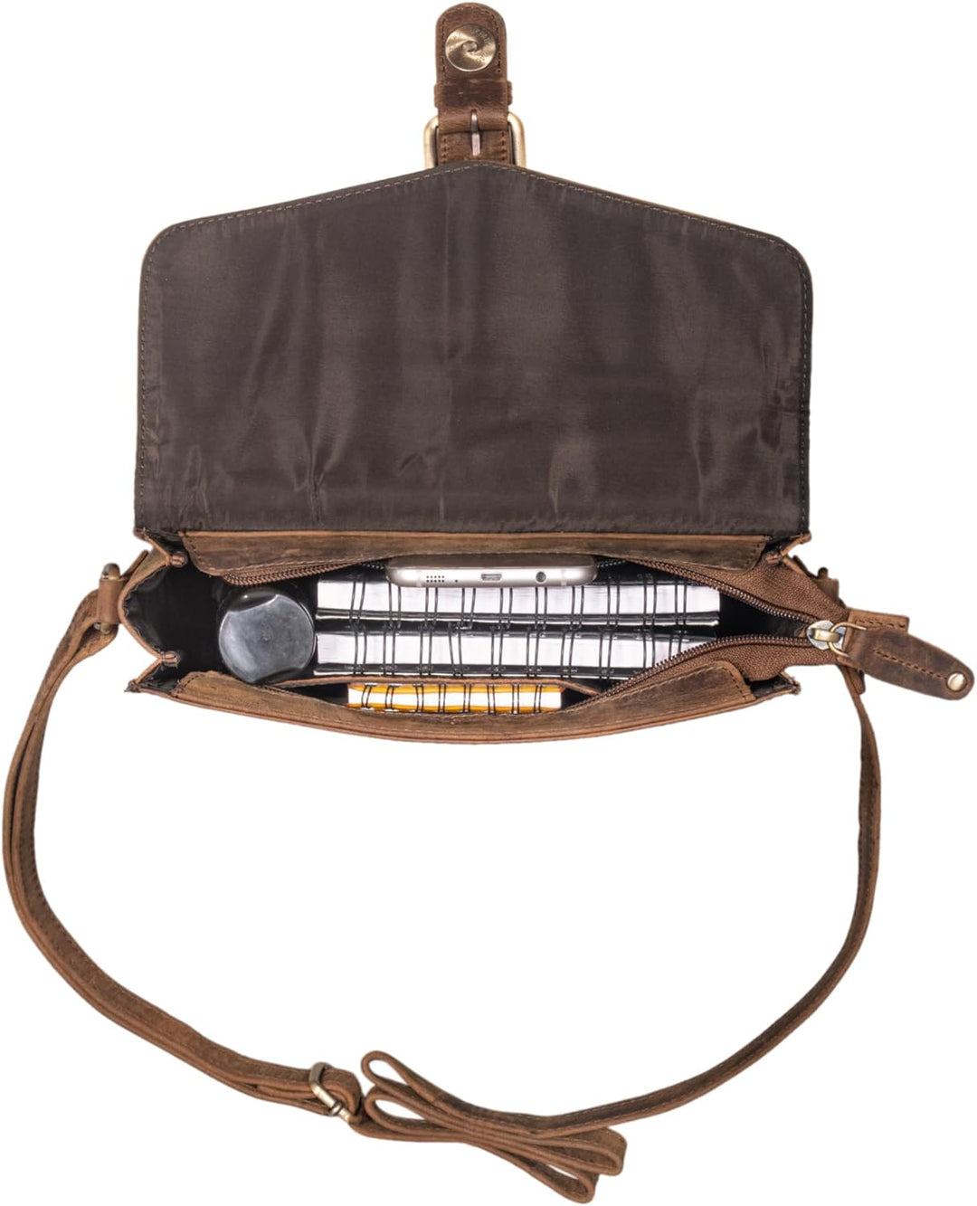 • Abmessungen: (LxBxH) 23 x 8 x 17 cm | Modell: Elora | Material: echtes Leder | Lederart: Rindsleder | Gewicht: 350 Gramm | Hersteller: STILORD | Aufteilung: Hauptfach (ungepolstert) für Tablets bis 8' oder DIN A5 | Einsteckfach für Smartphones bis 6,1'