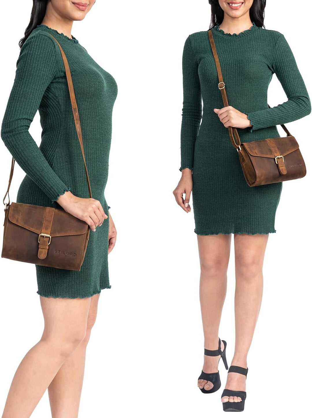 STILORD 'Elora' moderne Umhängetasche Damen klein Leder Handtasche Crossbody Damen Abendtasche Vinta