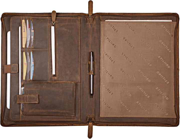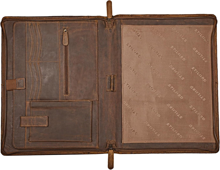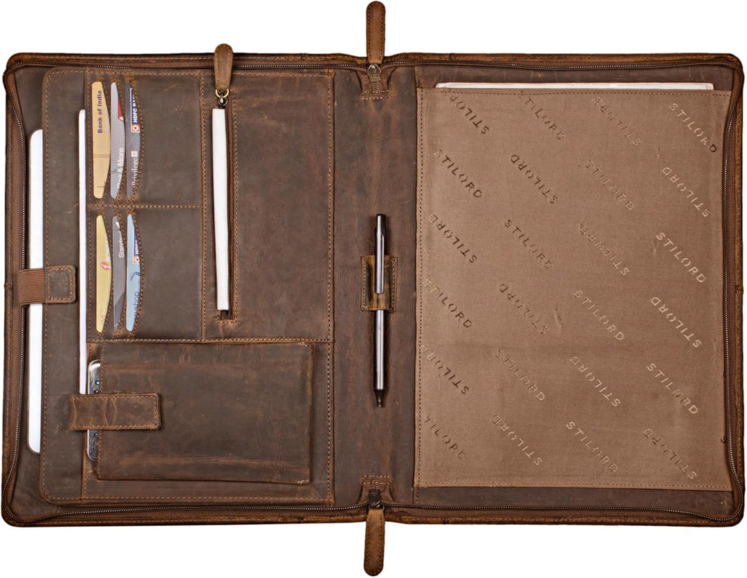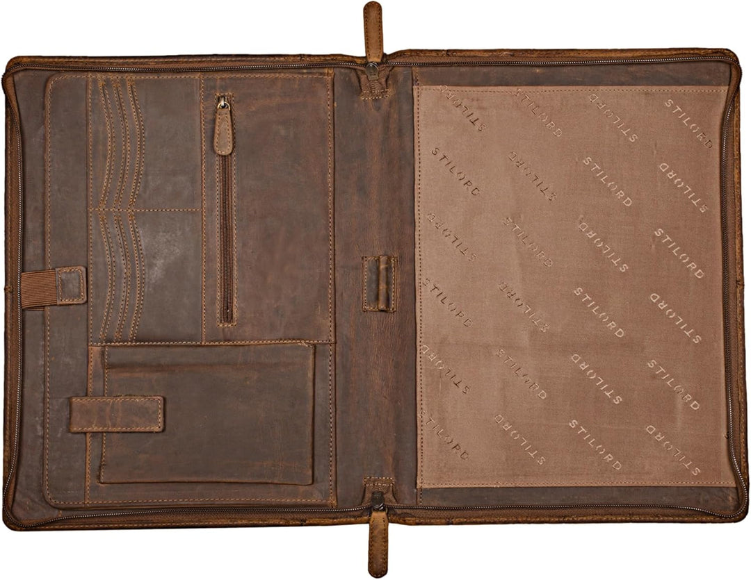 - Harrison ist ideal für Meetings, Kundenbesuche, Dienstreisen, Besprechungen, Konferenzen und Tagungen geeignet. | Elegante Vintage Dokumentenmappe Leder A4 für Herren und Damen, Organizer, grosse Leder Konferenzmappe, 12 Zoll Laptoptasche, klassische