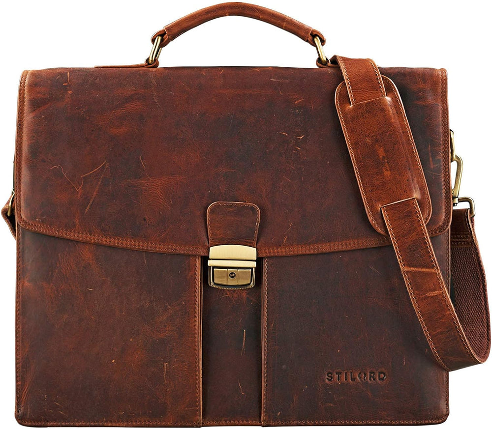 - Aktentasche Leder elegant / klassische Businesstasche | Gepolsterter, verstell- & abnehmbarer Schulterriemen (120 - 145 cm | 3cm breit) | zusätzlicher Tragegriff | Ideal als Bürotasche, Aktentasche, Businesstasche für Herren und Damen