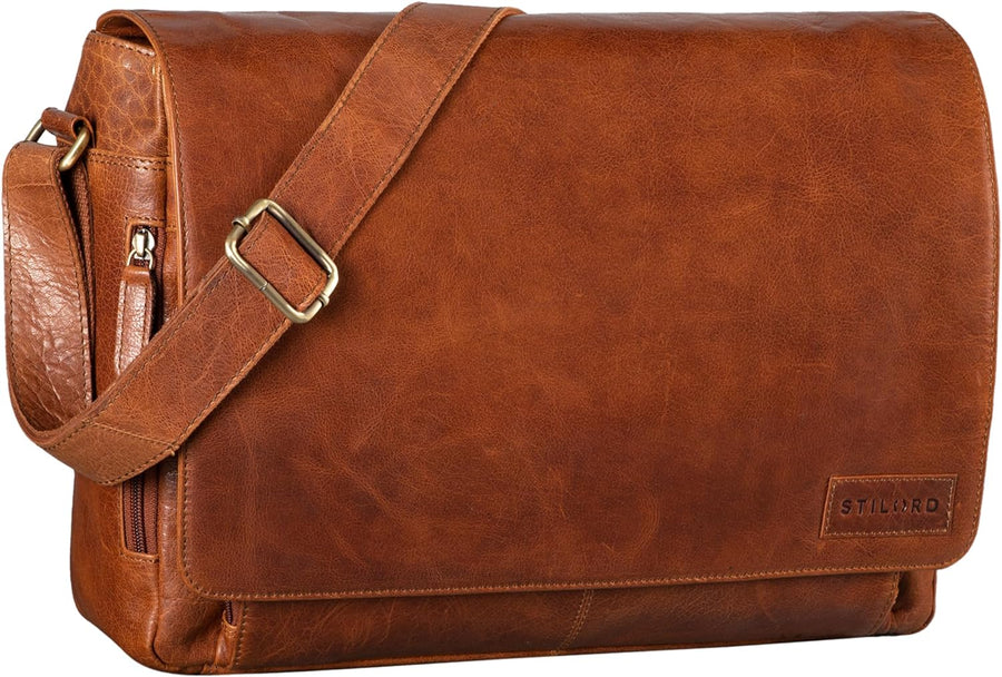 PRODUKTBESCHREIBUNGEN 15,6 Zoll Laptoptasche aus Leder Diese Umhängetasche aus Leder für Damen und Herren ist nicht nur ein treuer Begleiter in jeder Lebenslage aufgrund ihrer sehr praktischen Innenaufteilung. Neben den "inneren Werten" überzeugt die STILORD Umhängetasche auch durch ihr Äusseres: echtes Büffelleder, im angesagten Vintage Design und klassisch und zeitlos. Fünf Vorteile auf einen Blick: - 1.: Echtes und langlebiges Büffelleder - 2.:längenverstellbarer und bequemer Schultergurt - 3. : Separates Fach für 15,6" Laptop - 4. Tolle Optik - zeitloses und elegantes Design gepaart mit Vintage-Look - 5: Aufwändige Aufteilung, viele Fächer und drei Hauptfächer STILORD Schultertasche Leder - alles weitere in der Übersicht: Verteilung: - Masse (B x H x T): ca. 41 x 33 x 13 cm - Masse Laptopfach: 38,5 x 26 cm - passend für Geräte bis 15,6" - 1 horizontale Reissverschlusstasche hinten - 1 grosses Hauptfach - 1 kleine Reissverschlusstasche innen - 1 grosse Reissverschlusstasche hinten - Verstellbarer Schultergurt: 105-140 cm | 3,7 cm breit - Echtes Naturprodukt So können Farbabweichungen auftreten. - Verschlussart: Klappdeckel mit Magnetköpfen - Futter: Polyester - Material: echtes Büffelleder - Gewicht: 1250 g - Bitte beachten Sie: für diese Umhängetasche wurde Vintage Büffelleder verwendet - Die charakteristischen Streifen und Farbvariationen sind keine Mängel, sondern zeichnen diese Tasche aus!
