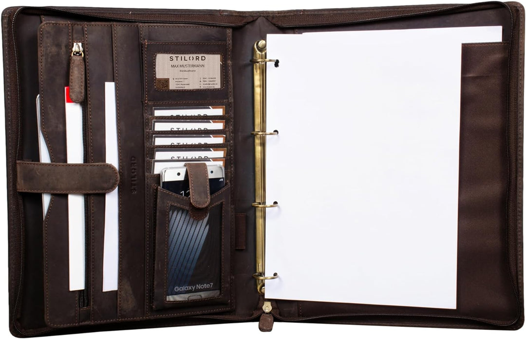 - Hochwertige Aktenmappe aus echtem Leder von STILORD | EleganteVintage Dokumentenmappe Leder A4 für Herren und Damen, Ringbuch, Organizer, grosse Leder Konferenzmappe, 13,3 Zoll Laptoptasche, Klassische Dokumentenmappe mit Reissverschluss, Ringbuchmappe,